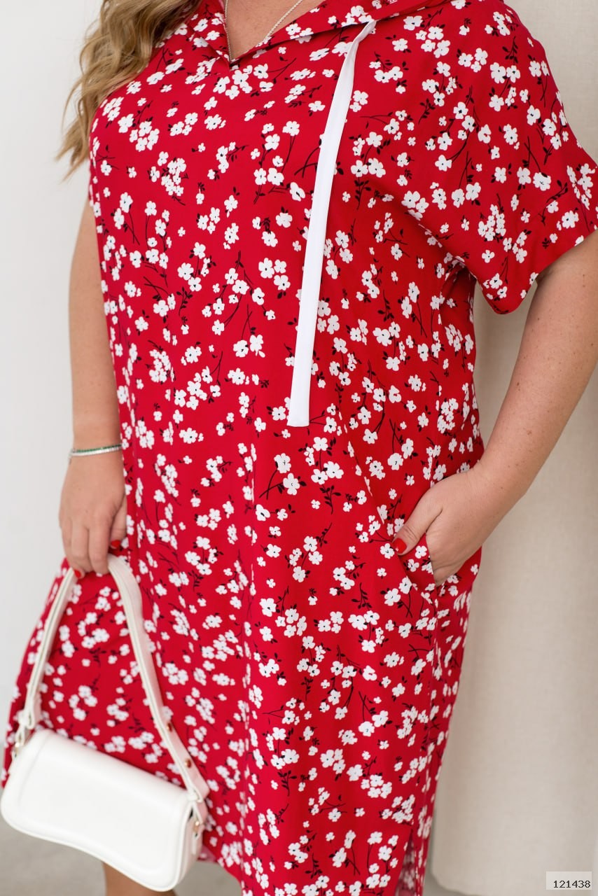 Ця легка сукня в спортивному стилі — твій must-have для активних і стильних днів. Зручний V-подібний виріз переходить у капюшон зі шнурком-стрічкою — виглядає стильно й незвично. Спущені рукави з манжетом дарують свободу рухів, а кишені з боків — зручність на кожен день. Поділ подовжено ззаду та красиво заокруглений, бічні розрізи додають легкості й підкреслюють жіночність. Ідеально поєднується з кросівками або улюбленими сандалями.