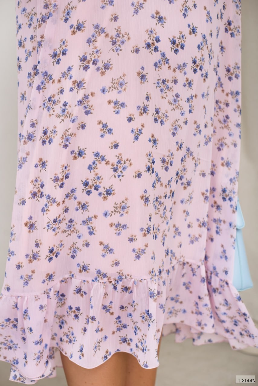 Сукня з легкого шифону — ідеальний вибір для теплих днів. Вона має комфортний вільний крій, що дарує відчуття легкості, а довжина міді з воланом внизу додає грайливості та жіночності. Рукави до ліктя з м’якою резиночкою роблять образ стильним і зручним. Модель доповнена трикотажною підкладкою для твого комфорту, а по спинці до волана проходить акуратний шов, який додає силуету охайності та гарної посадки.