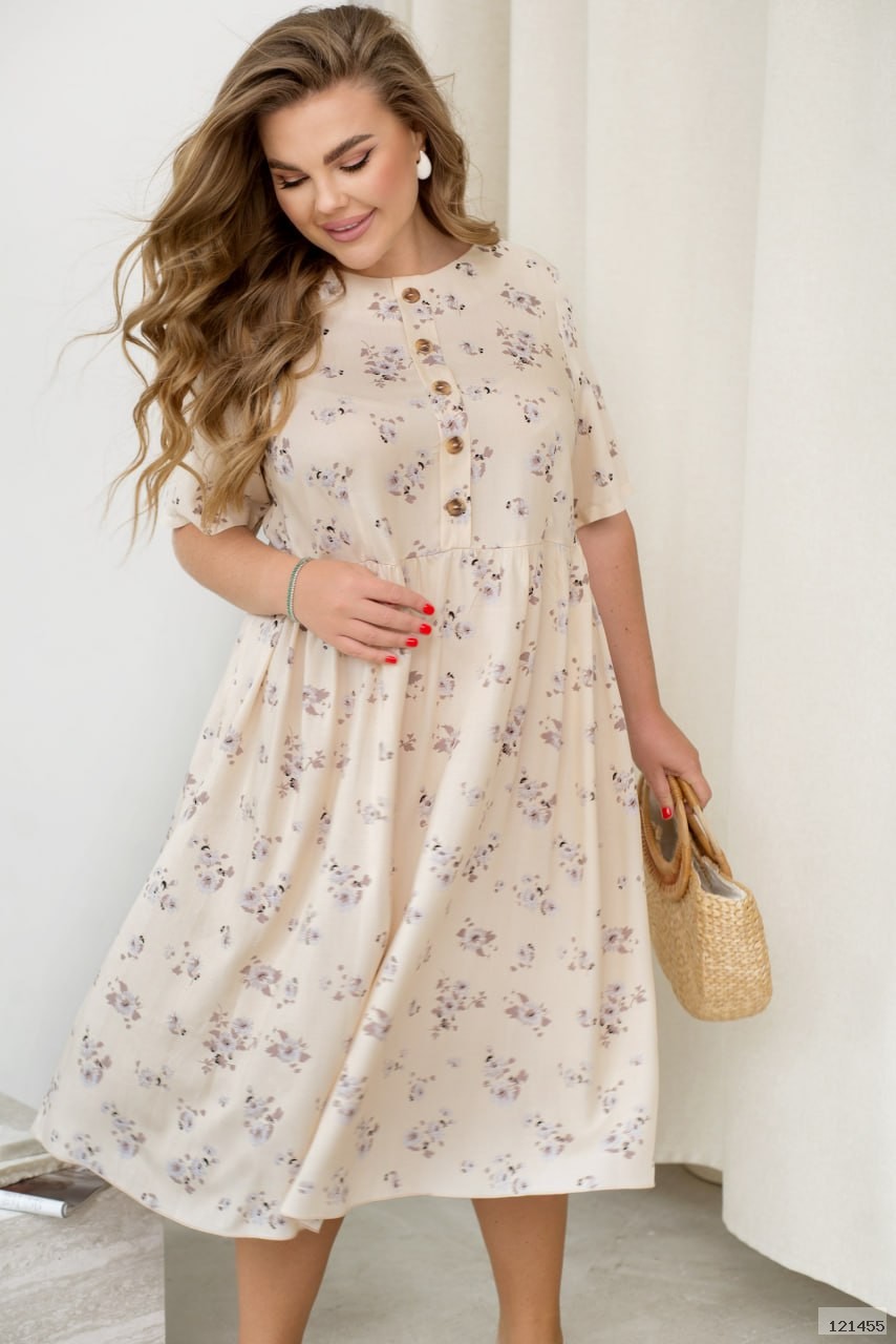 Легка сукня зі штапелю створена для найтепліших і найзатишніших днів. Напівкруглий виріз горловини витончено підкреслює шию, а короткі рукави дарують комфорт навіть у спеку. Відрізна талія м’яко акцентує силует, а вільна спідниця грайливо рухається в ритмі кожного кроку. Декоративні ґудзики спереду додають шарму, а застібка ззаду на один ґудзик — витончену завершеність. Зручні кишеньки по боках — для дрібниць і комфорту. ⠀