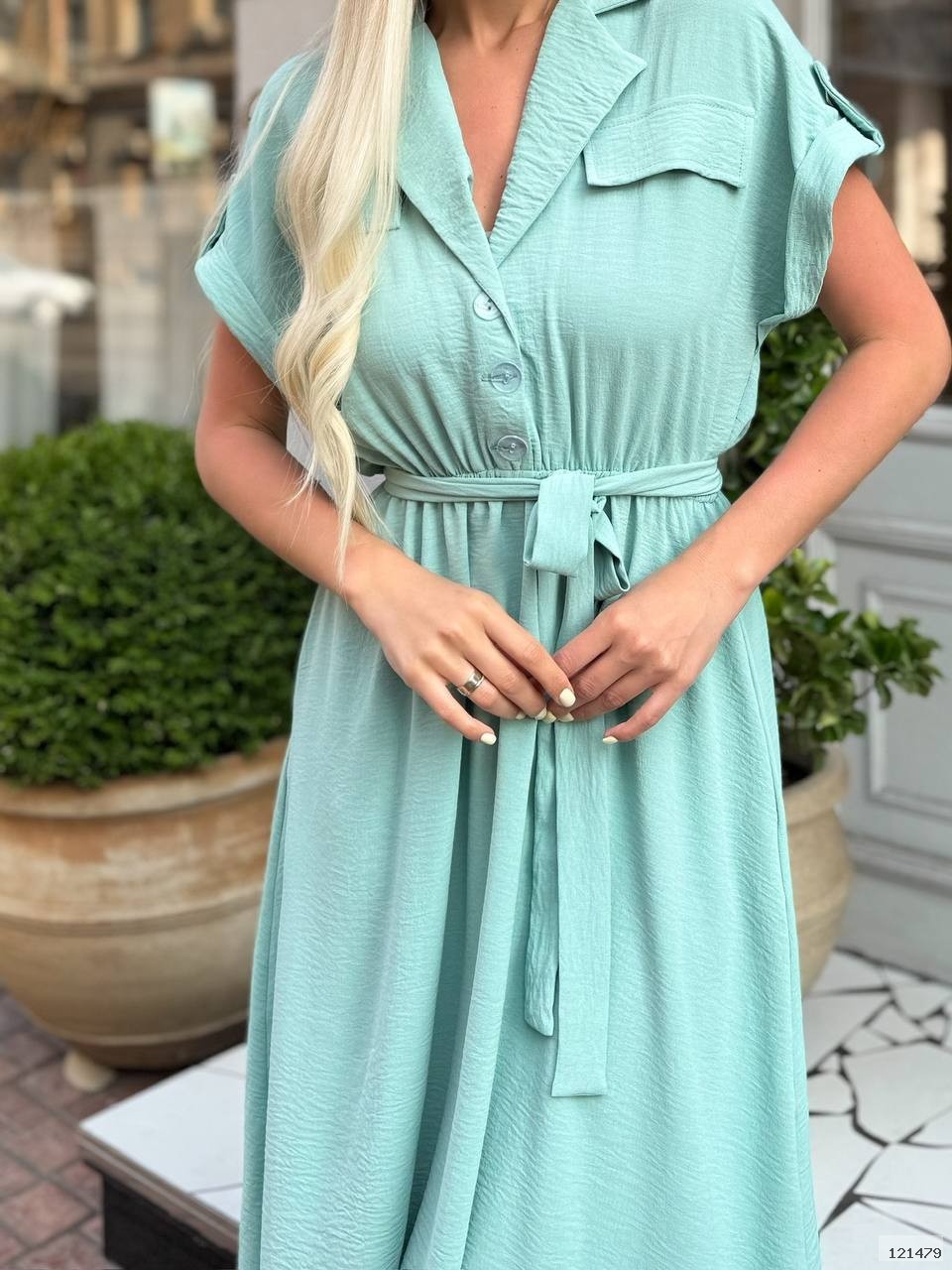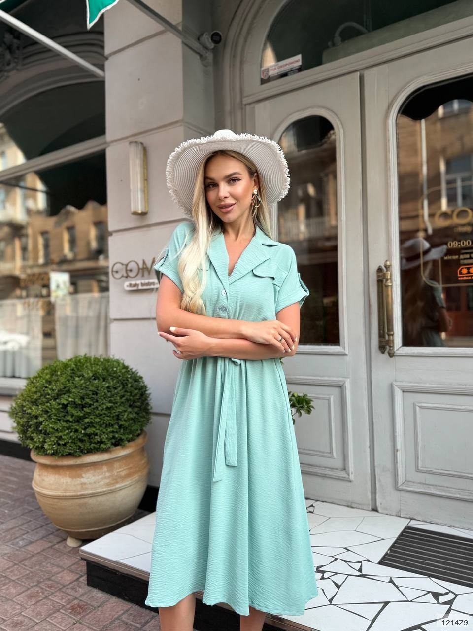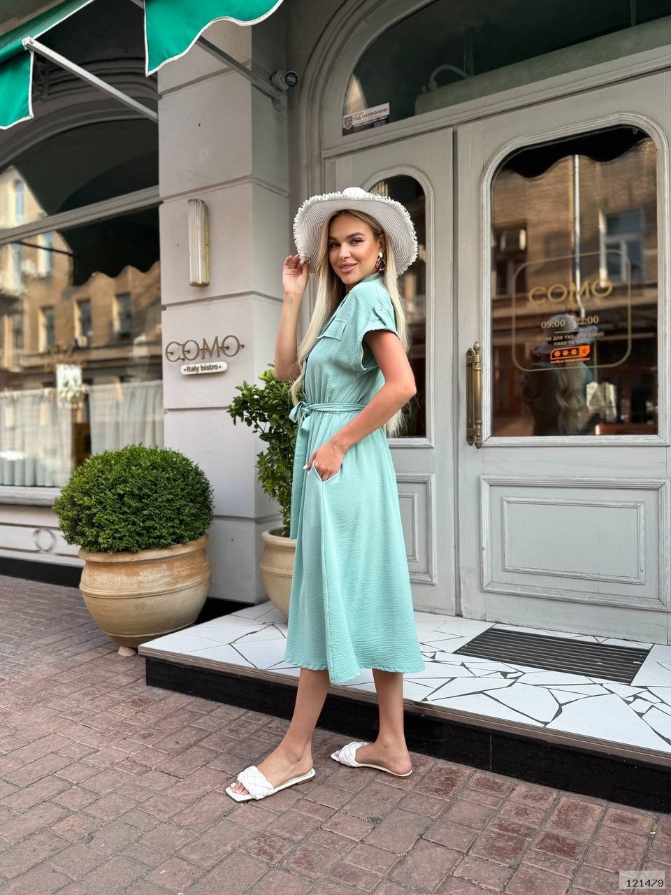 Легенька літня сукня. Талія на резинці. З боків є кишені. Пояс у комплекті.