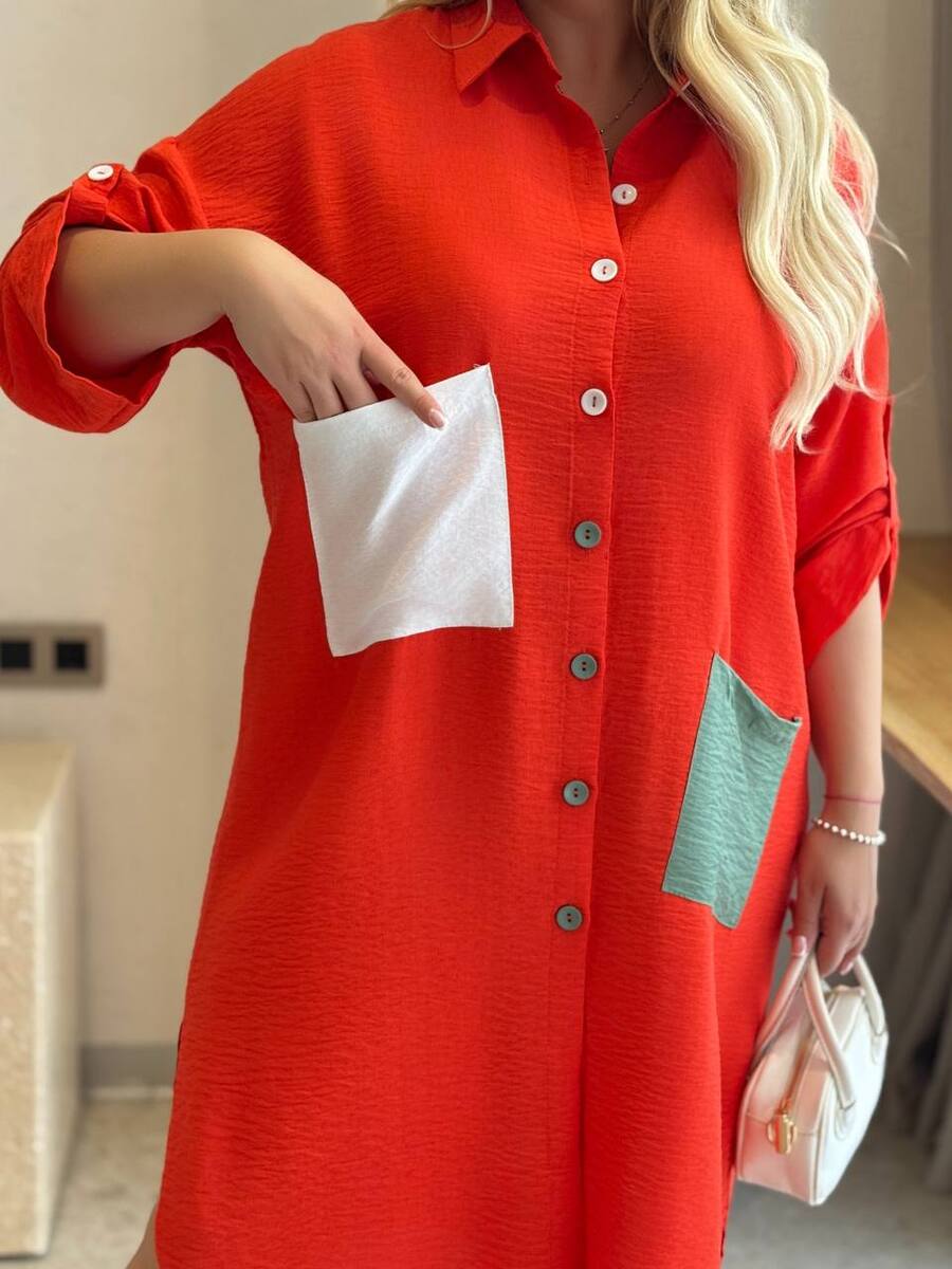 Вільний силует приховає невеличкі недоліки фігури,а яскраві кишені та ґудзики додадуть яскравих кольорів навіть у самий звичайний день!