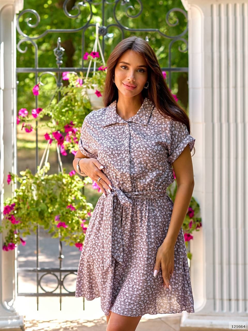 Легка сукня з принтованого штапелю. Талія на резинці. По бокам кишені. Тканинний пояс