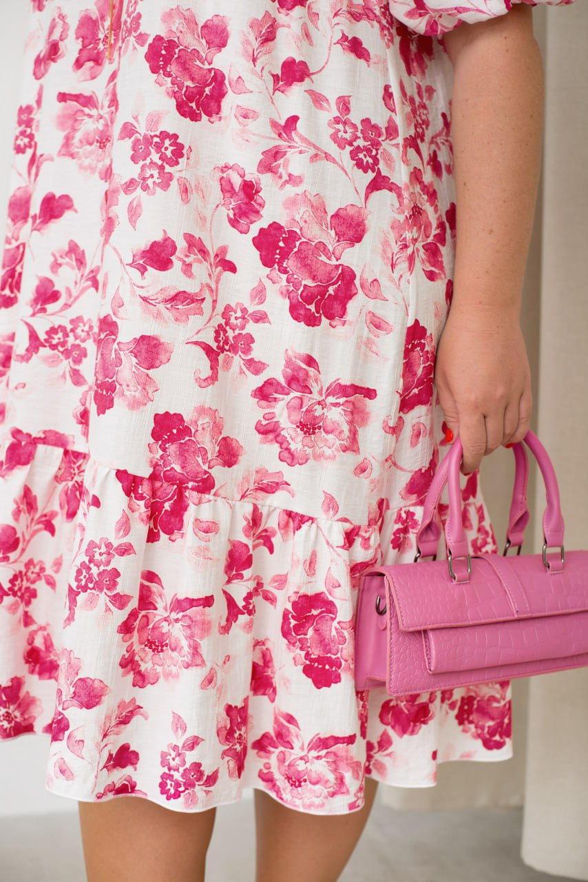 Повітряна, витончена і така ніжна — ця сукня з жатого льону створена для того, щоб ти почувалась особливою. Вільний крій дарує комфорт і легкість, а тканина красиво струмує по фігурі. Короткі рукави на резиночках додають шарму, а ніжний волан по подолу — грайливості. Ідеальний варіант для побачень, прогулянок і всіх моментів, коли хочеться трохи більше жіночності.