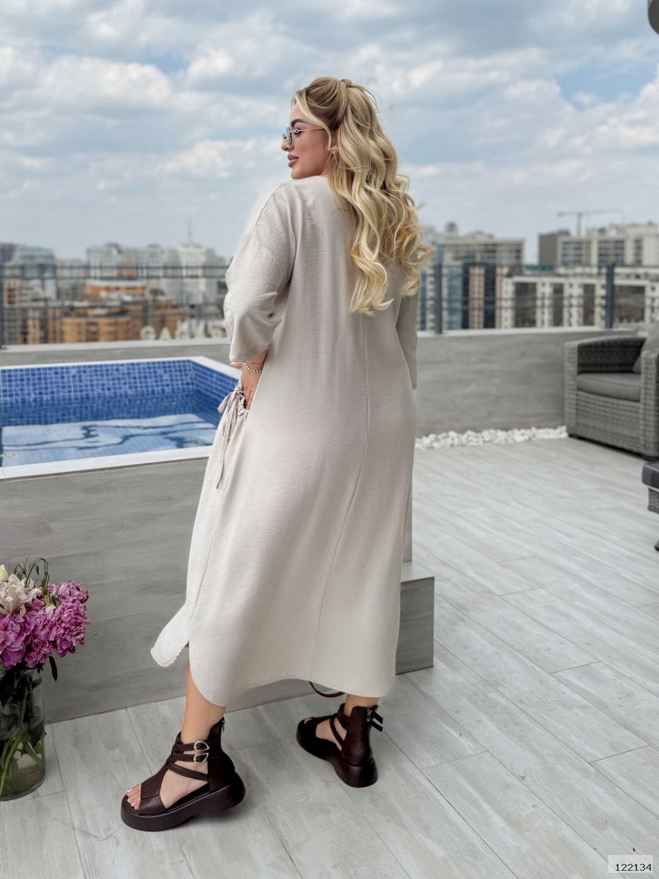 Сукня в стилі бохо, якісна, дихаюча тканина, не парить. Асиметрична застібка, декоративні гудзики додають оригінальності та візуально роблять стрункіше сілуєт.