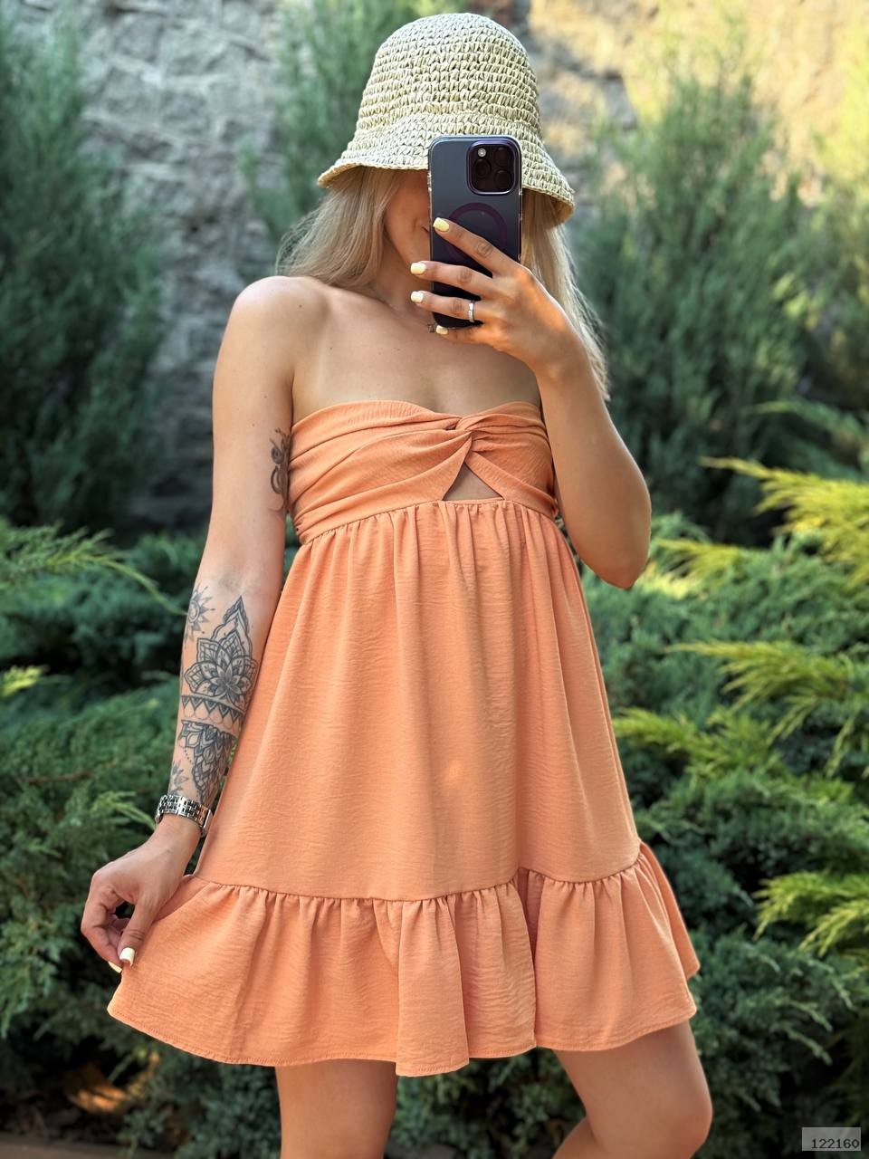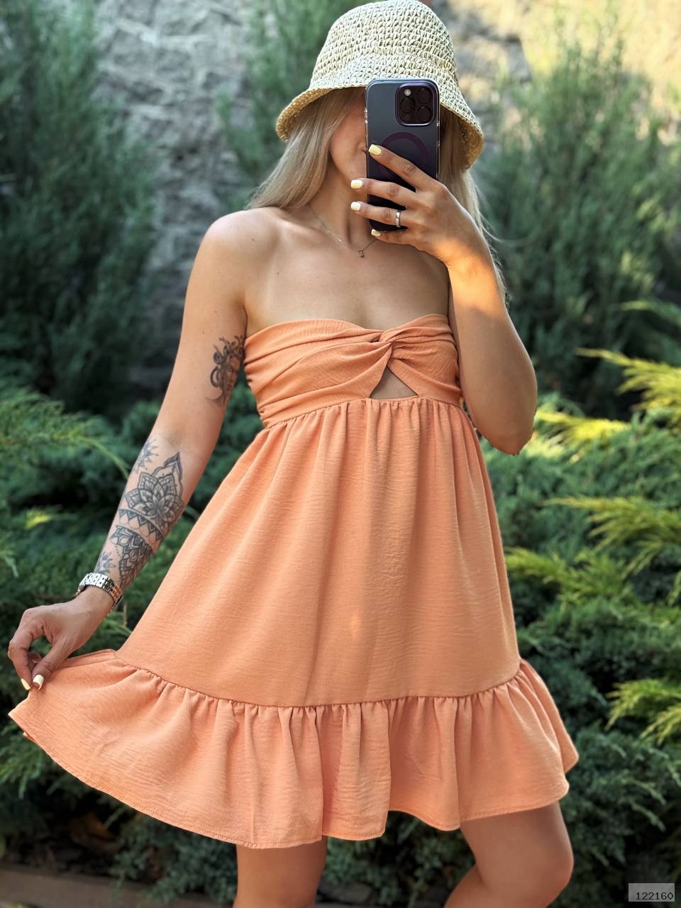 Ідеальна сукня на спекотну погоду нашого літа. Це саме те що ти шукала -універсальний варіант для прогулянок , для пляжу та відпочинку. Позаду йде на 2х резиночках, що дозволяє чудово триматися сукні на бюсті.