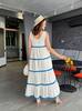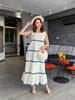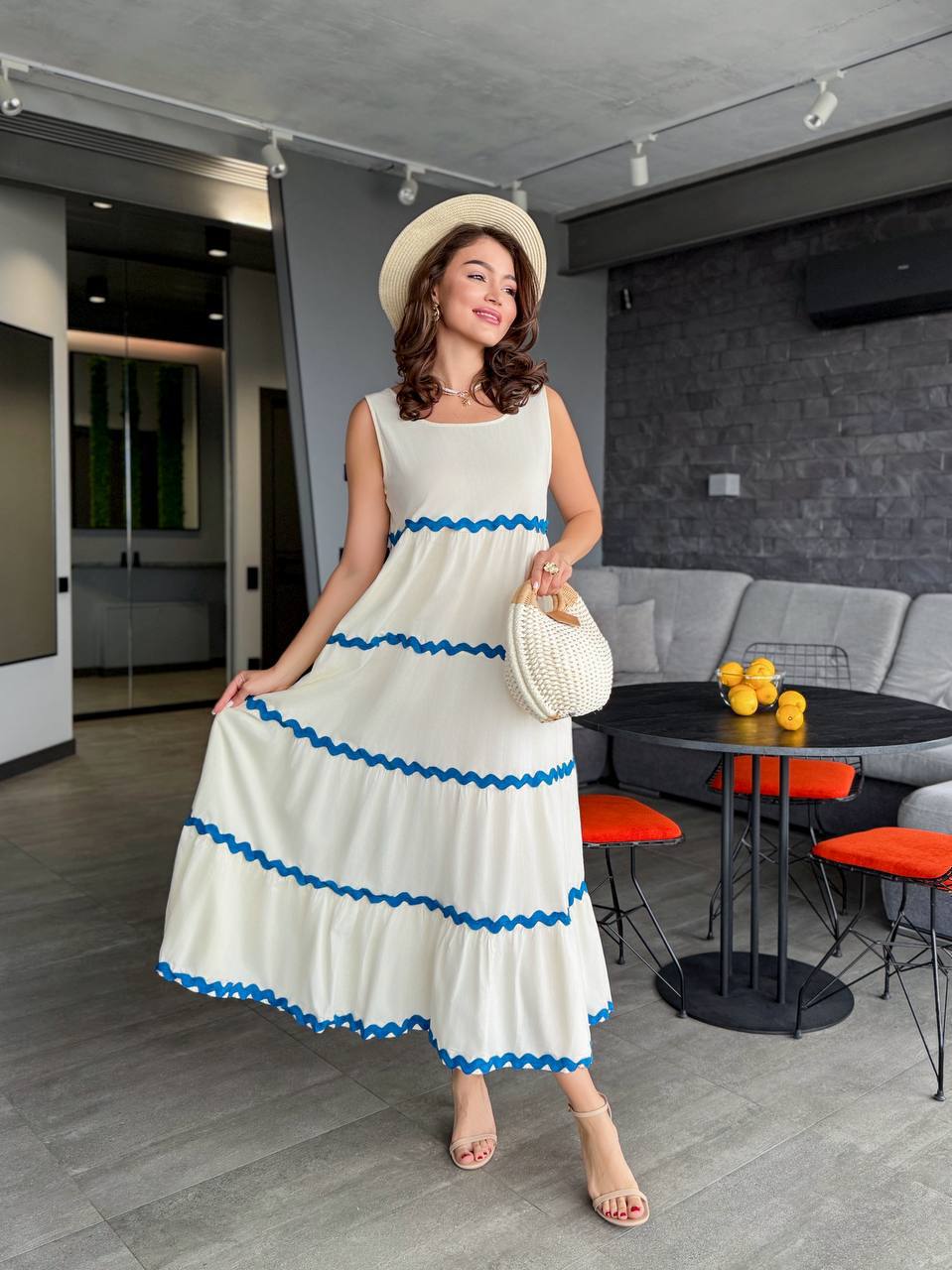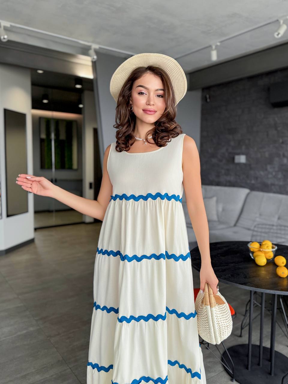Легкий жіночий сарафан максі довжини з м’якої приємної тканини. Має вільний фасон, що не сковує рухів, та оздоблений хвилястими декоративними вставками. Зручна потайна блискавка збоку забезпечує комфортне одягання. Ідеальний для літа, прогулянок і відпочинку.