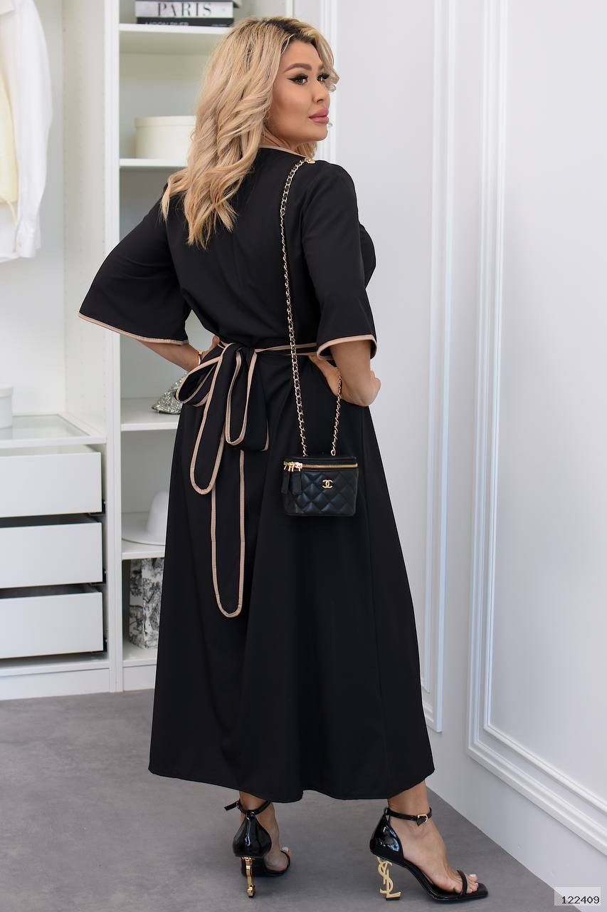 Стильна сукня з вшивним паском ,прикрашена спереду ґудзиками та розрізом . Є кишені з боків сукні для зручності .