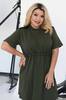 Плаття спортивного стилю: на талії шляпна резинка з двома фіксаторами , якими можна регулювати обʼєм талії , на грудях нашивка , короткий рукав, на плечах чорна вставка з основної тканини.