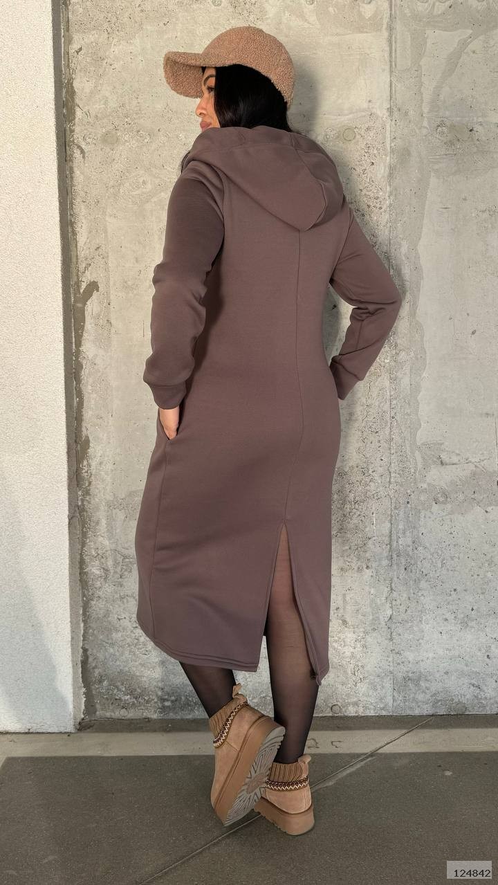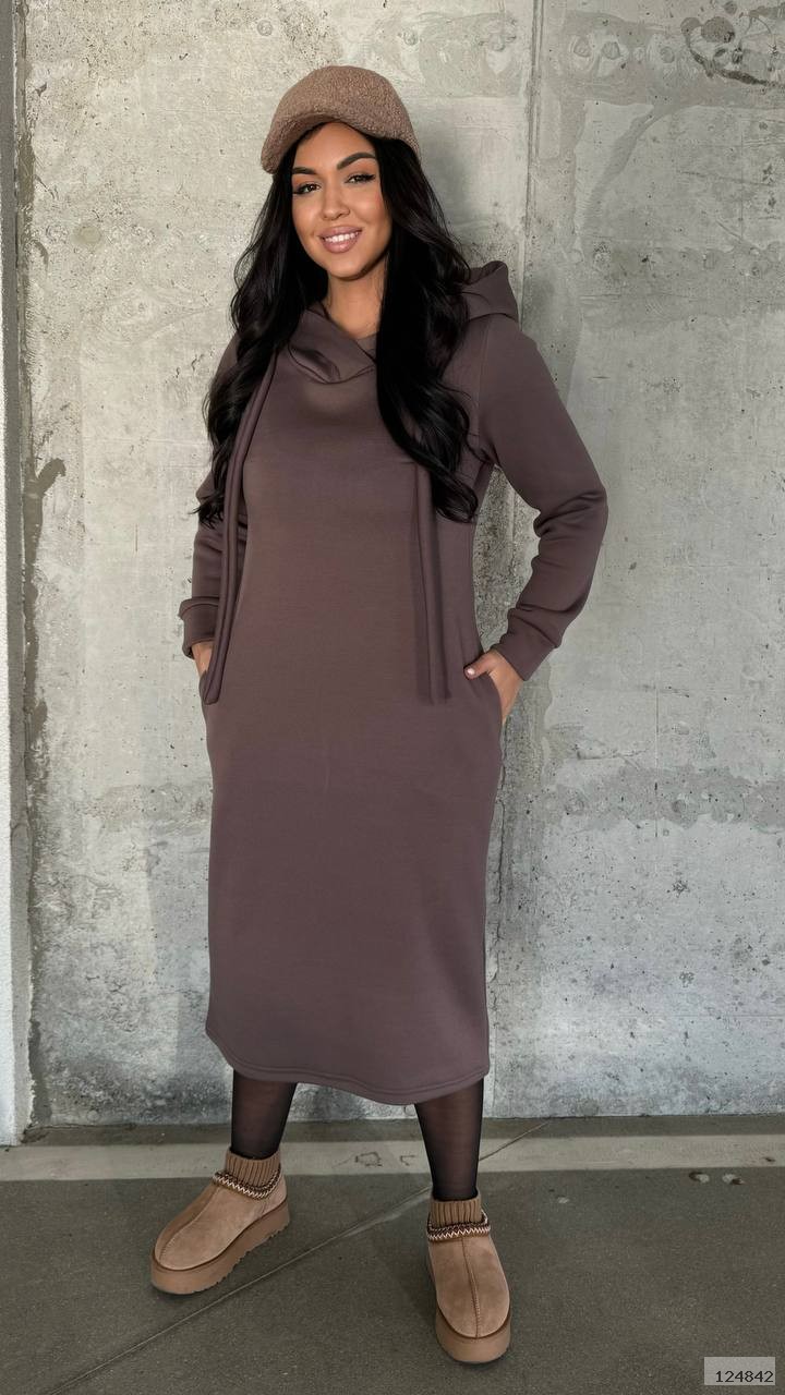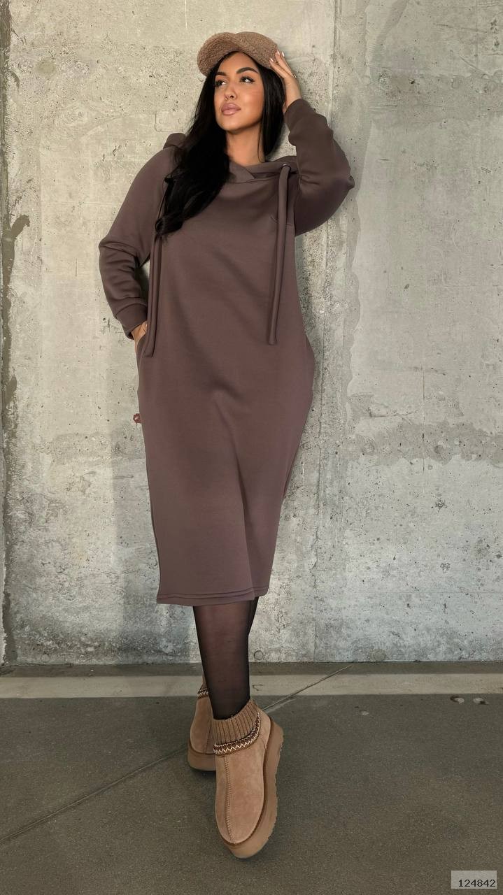 Сукня приталеного силуету з трьохнитки с начосом, відмінной якості. Глибокий капюшон і бічні кишені, рукава на манжеті. Тепло, затишно та неймовірно красиво.