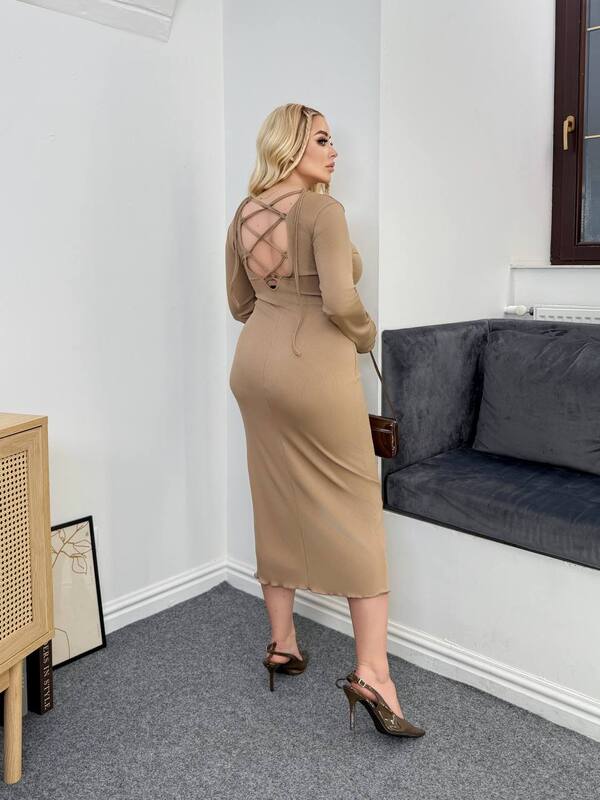 Елегантний силует, ідеальний крій та цікава шнурівка на спині створюють витончений образ, який захоплює з першого погляду.