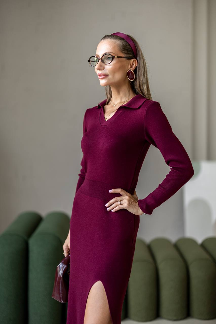 Лаконічна і жіночна сукня з м'якого бавовняного трикотажу з виразним коміром у стилі поло. Акуратний розріз додає легкості руху та робить силует більш витонченим. Матеріал комфортно прилягає до тіла, підкреслюючи природні лінії фігури та створюючи відчуття м'якості та затишку.