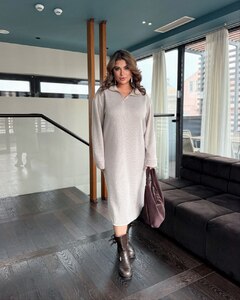 Осінньо-зимова тепла прогулянкова сукня. Сукня, довжина нижче коліна, з довгим рукавом, комір стояка, попереду змійка.