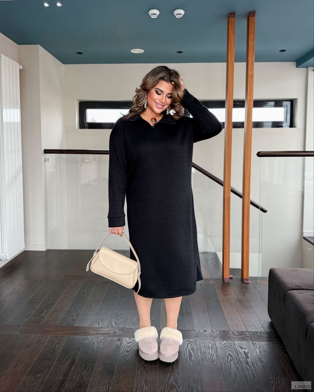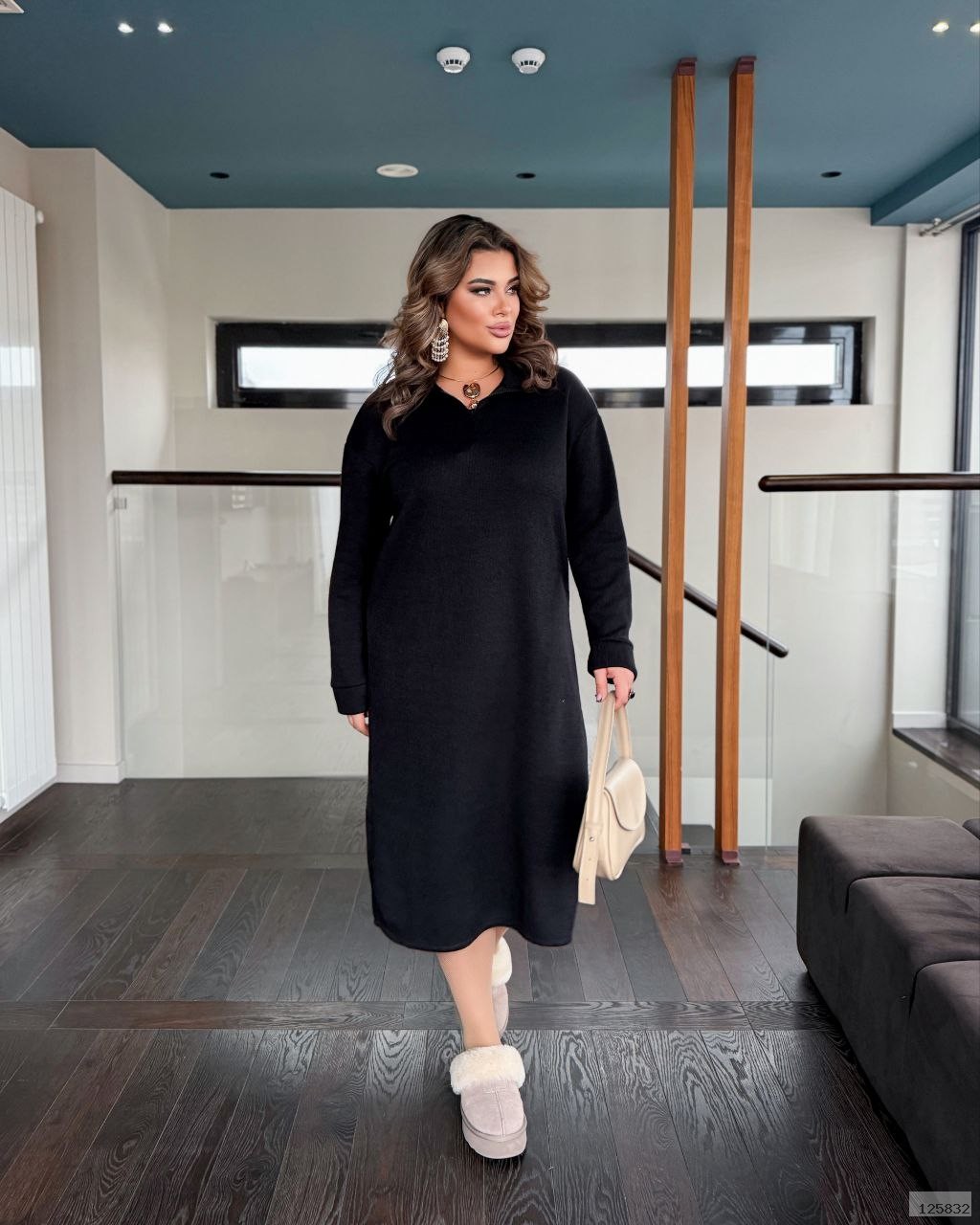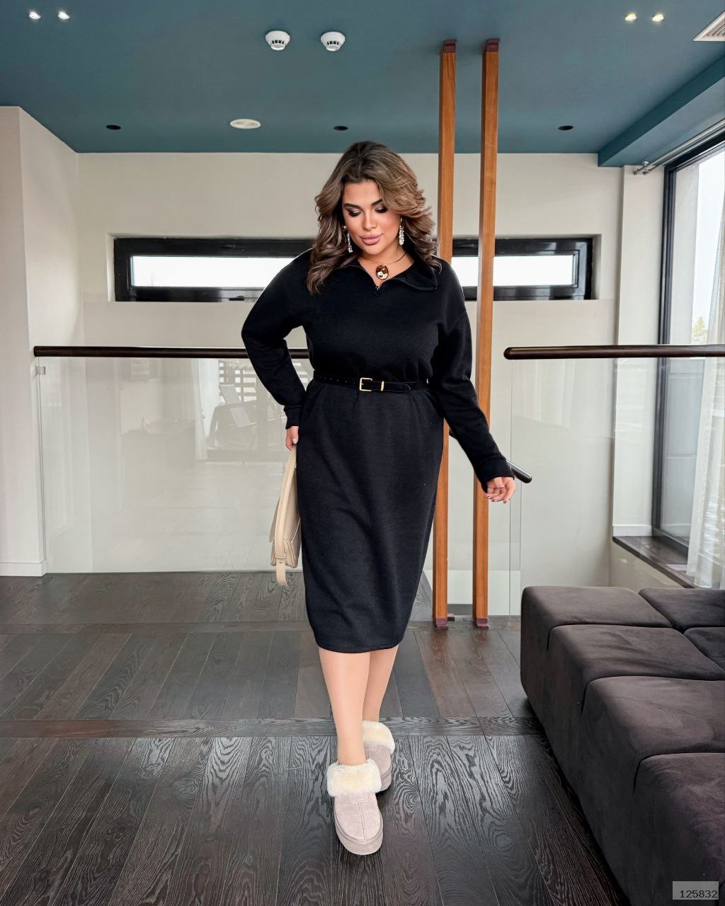Осінньо-зимова тепла прогулянкова сукня. Сукня, довжина нижче коліна, з довгим рукавом, комір стояка, попереду змійка.