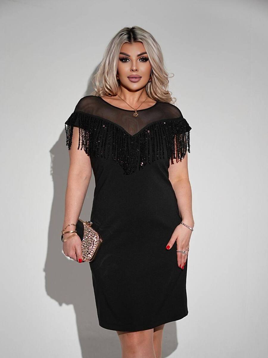 Витончена сукня, яка підкреслює силует. Сукня декорована елегантною бахромою з паєткою
