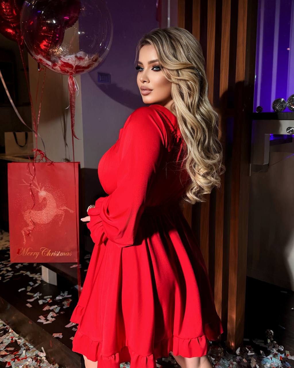 Сукня з костюмного шовку з ніжними рюшами та акуратною зборкою по грудях — це модель, яка закохує з першого погляду. Легка хвиля шовкової тканини м’яко лягає по фігурі, створюючи елегантний, витончений силует, а рюші додають образу романтичності та легкої грайливості.