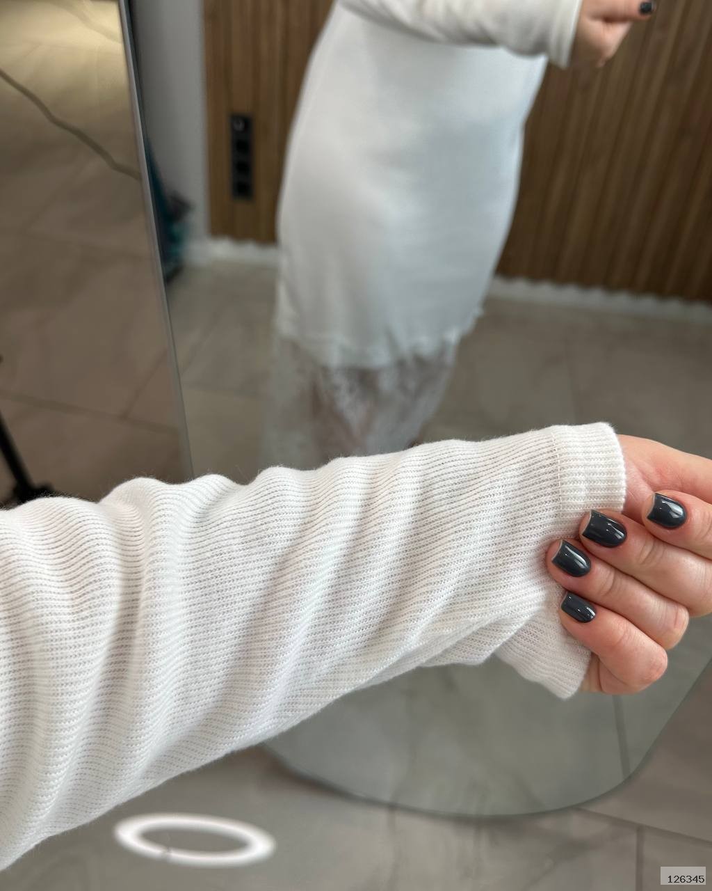 Ніжна та елегантна сукня, виконана з м’якої ангори, яка приємно огортає тіло та забезпечує комфорт у прохолодну пору року. Доповнена вишуканими вставками з італійського мережива, що додають образу жіночності та легкого шику.
