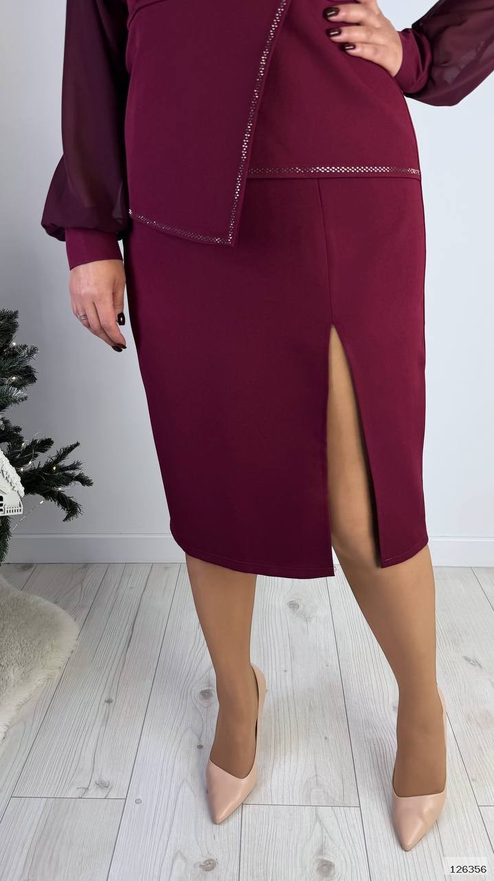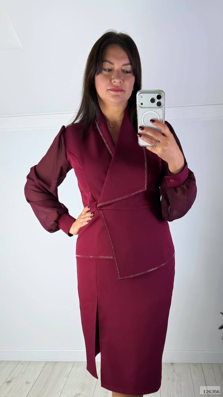 | Ткань: | креп костюмний, шифон, оздоблення термокаміння |