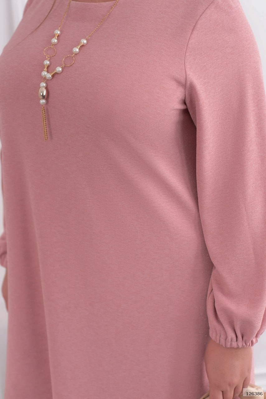 Елегантна та мінімалістична сукня, що зачаровує своїм делікатним блиском люрексу. Модель має напівкруглий широкий виріз горловини, діагональні виточки на грудях, які красиво підкреслюють силует, та зручні кишені у бокових швах. Вільні рукави, зібрані на зап’ястках резинкою без манжетів, додають легкості та жіночності. Без застібок — лише комфорт, блиск і невимушена елегантність у кожному русі.