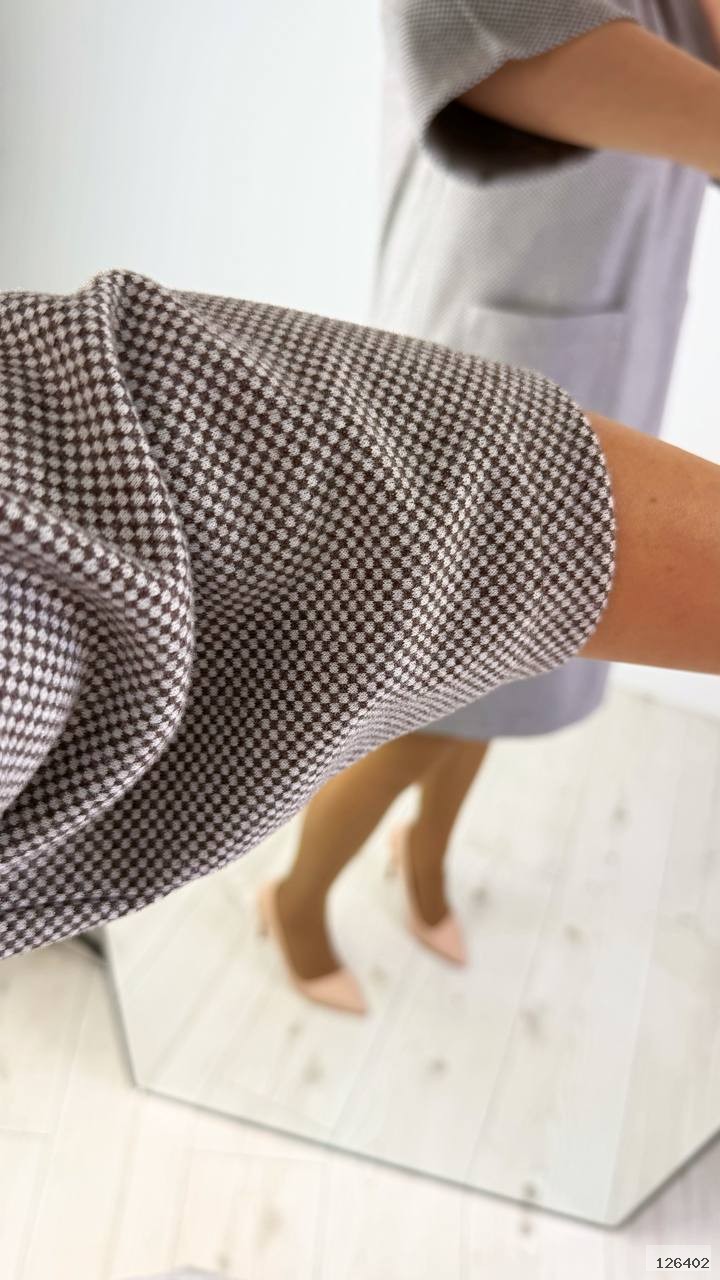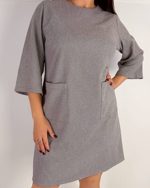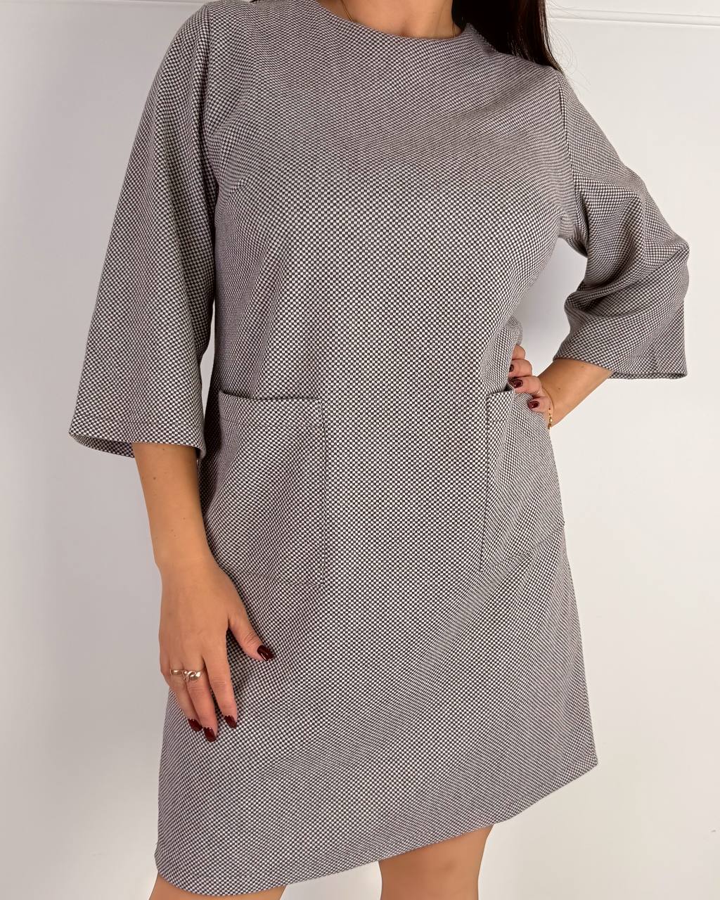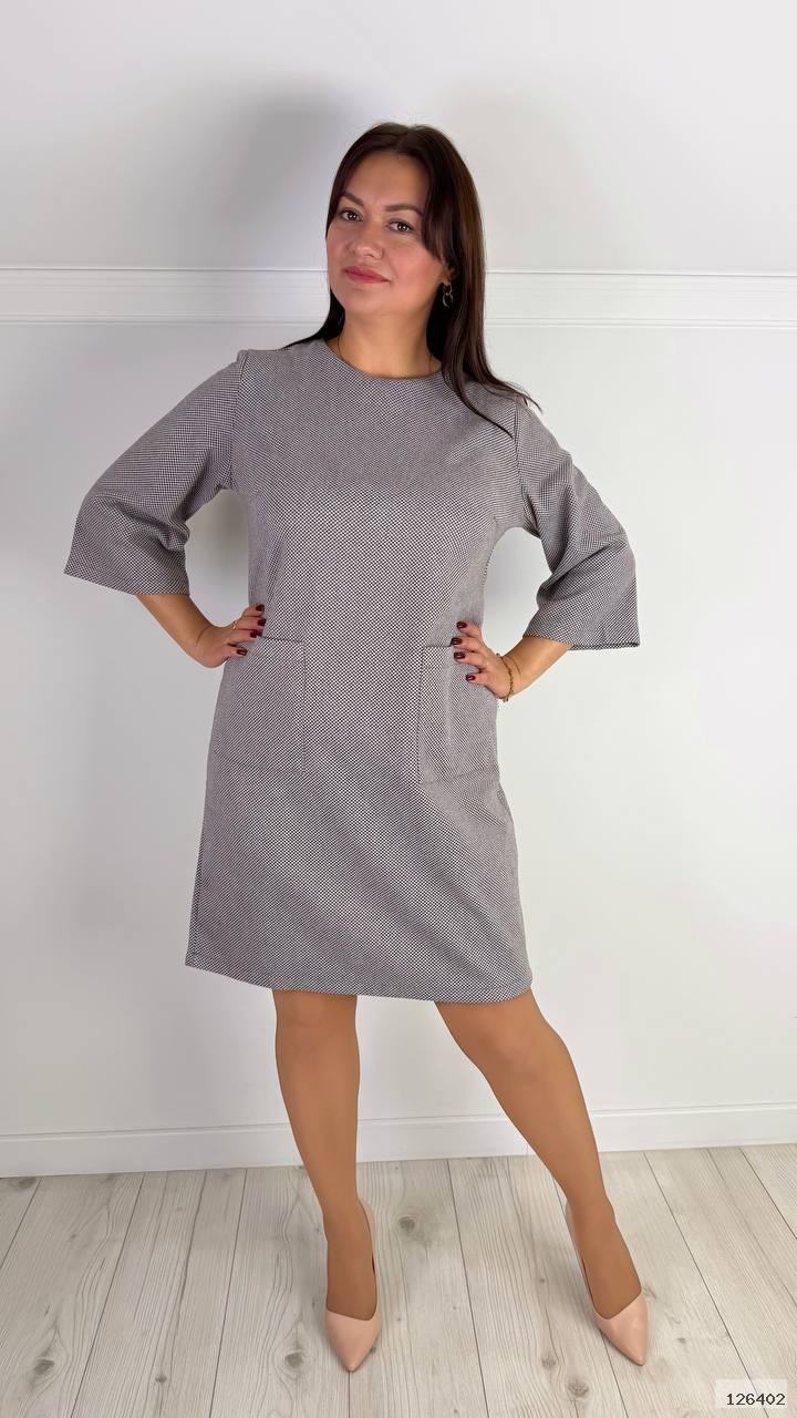 Плаття прямого крою,із накладними кишенями. Позаду потайна блискавка.