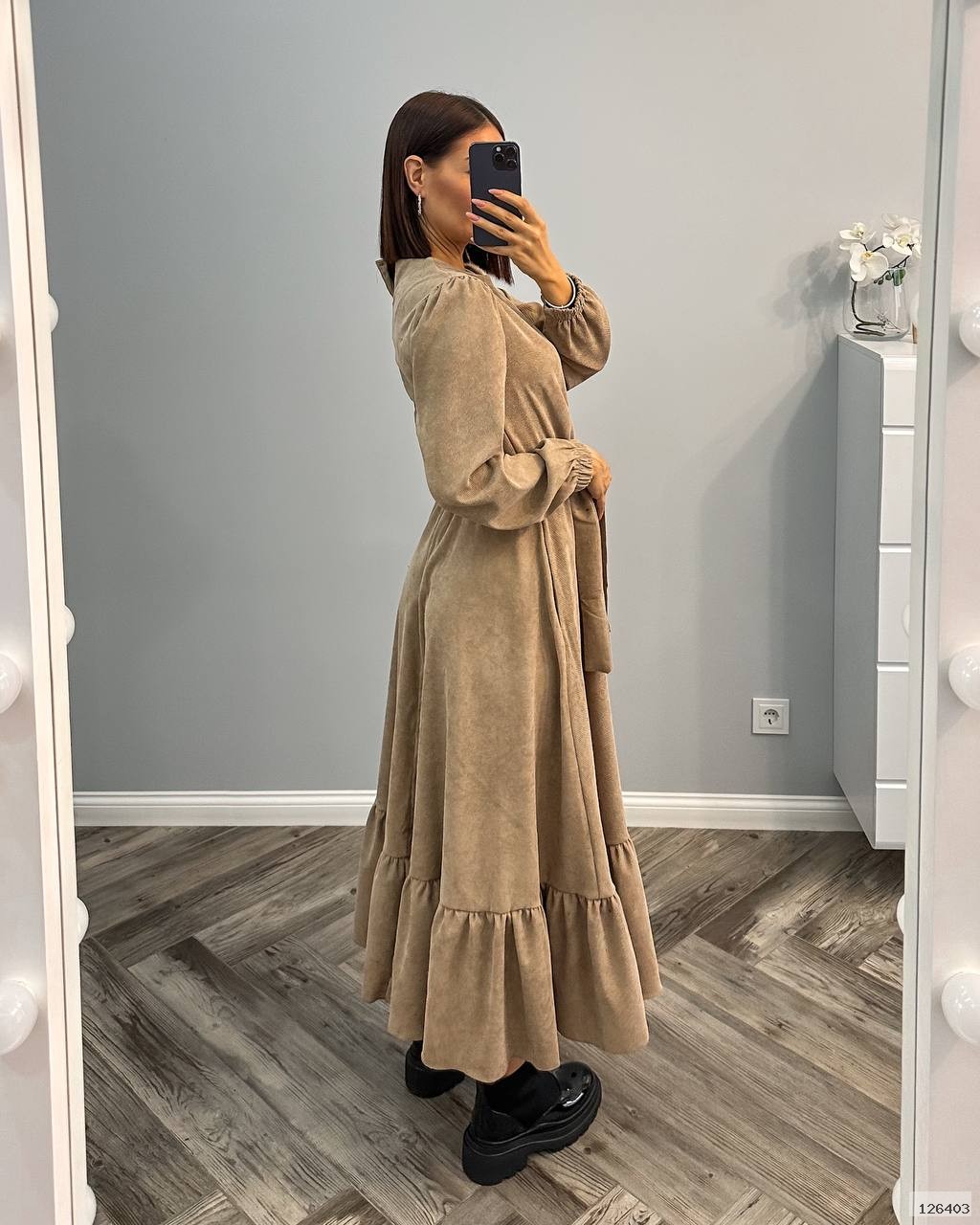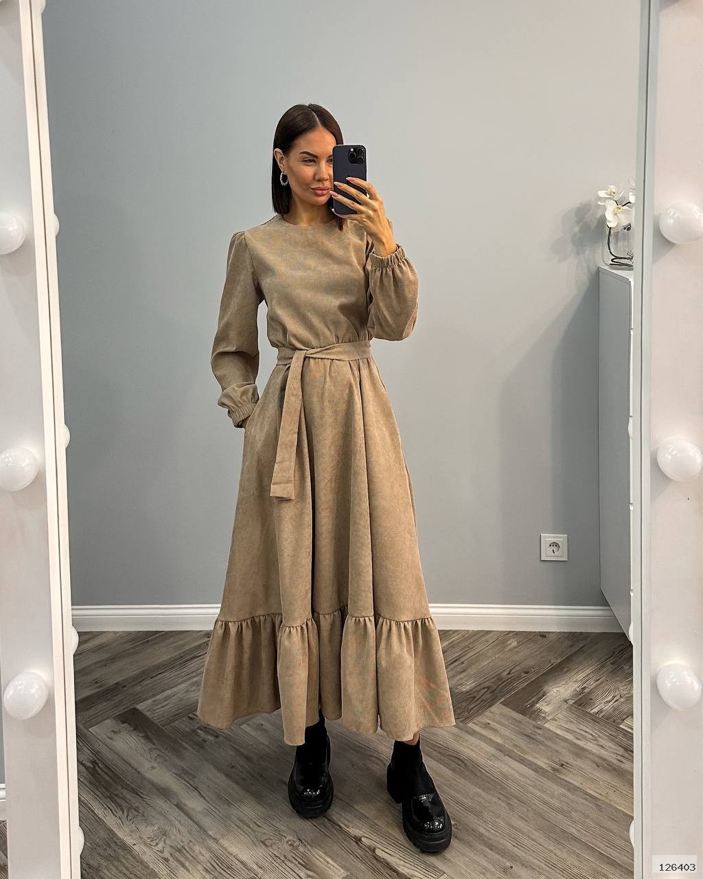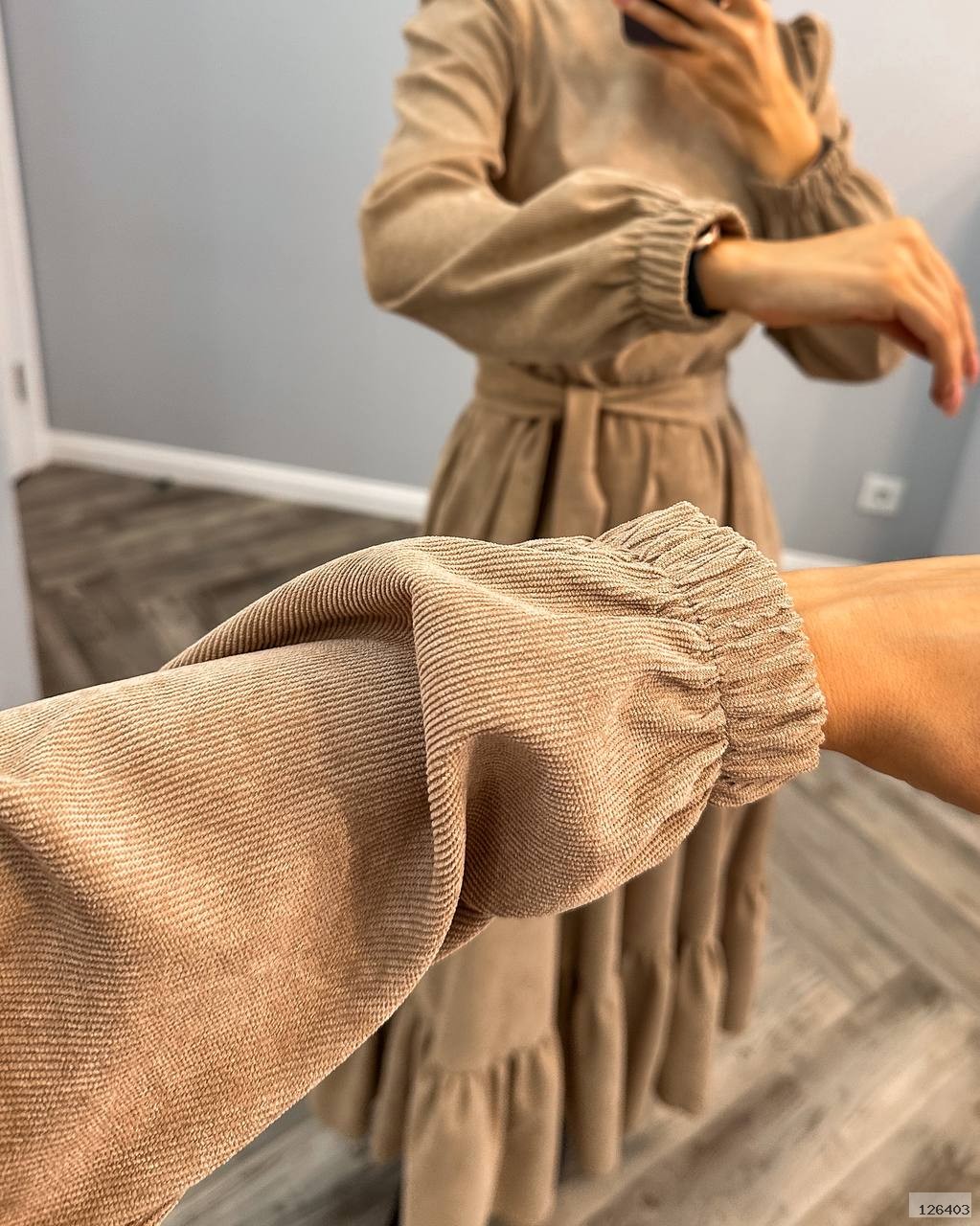 Елегантне довге плаття з м’якої приємної тканини, яке забезпечує комфорт та вишуканий вигляд на кожен день. Модель має припущений об’ємний рукав, манжети на резинці та пояс, який красиво підкреслює талію.