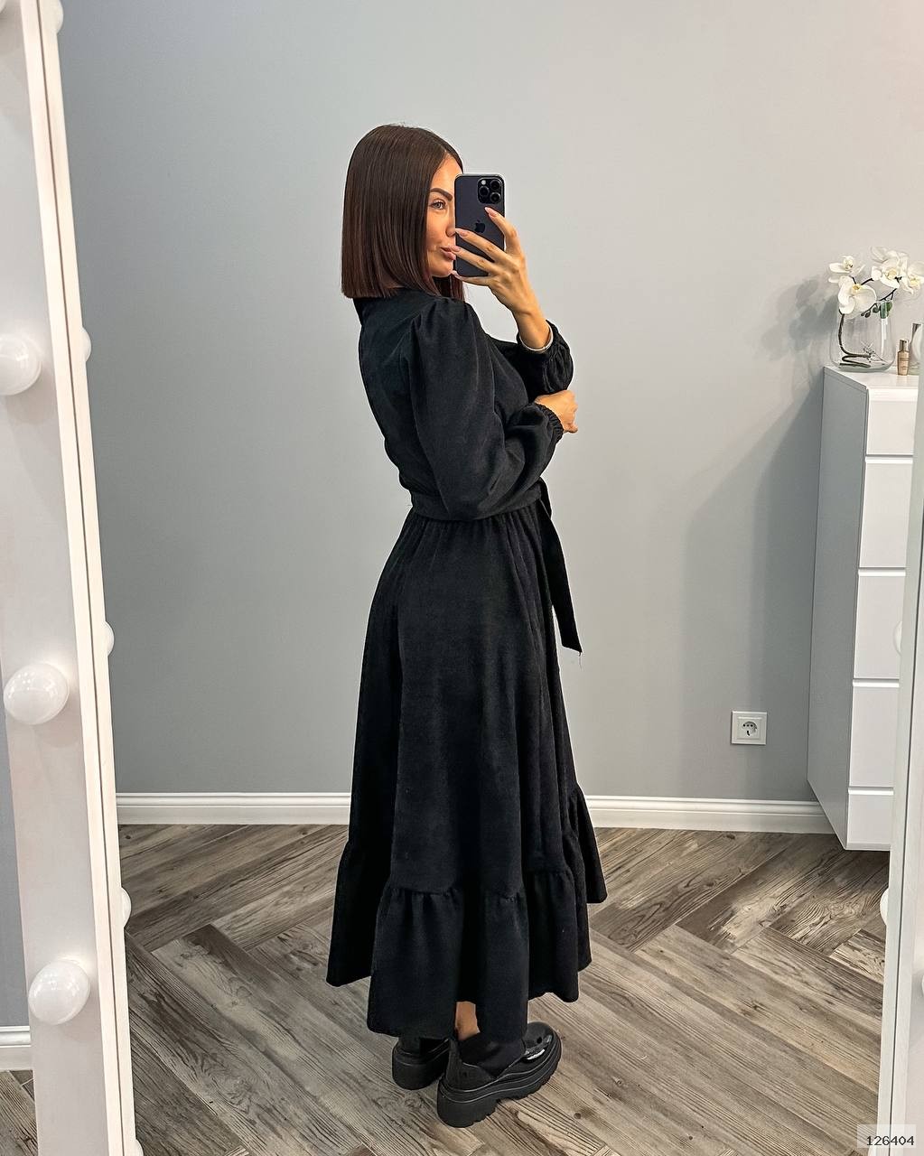 Елегантне довге плаття з м’якої приємної тканини, яке забезпечує комфорт та вишуканий вигляд на кожен день. Модель має припущений об’ємний рукав, манжети на резинці та пояс, який красиво підкреслює талію.