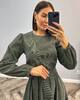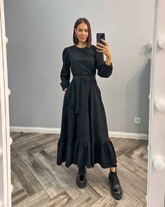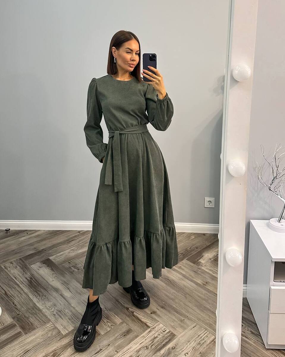 Елегантне довге плаття з м’якої приємної тканини, яке забезпечує комфорт та вишуканий вигляд на кожен день. Модель має припущений об’ємний рукав, манжети на резинці та пояс, який красиво підкреслює талію.