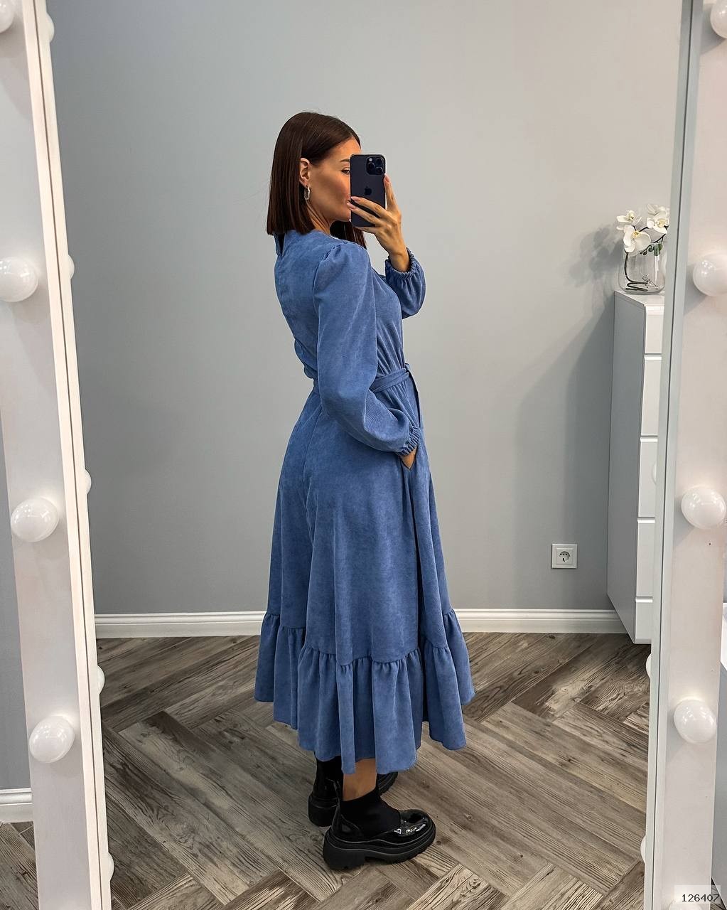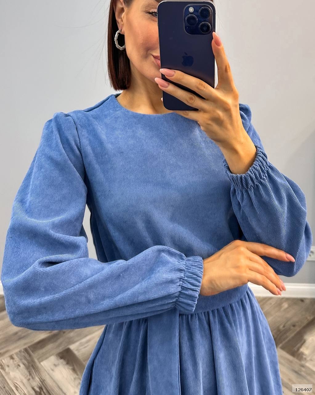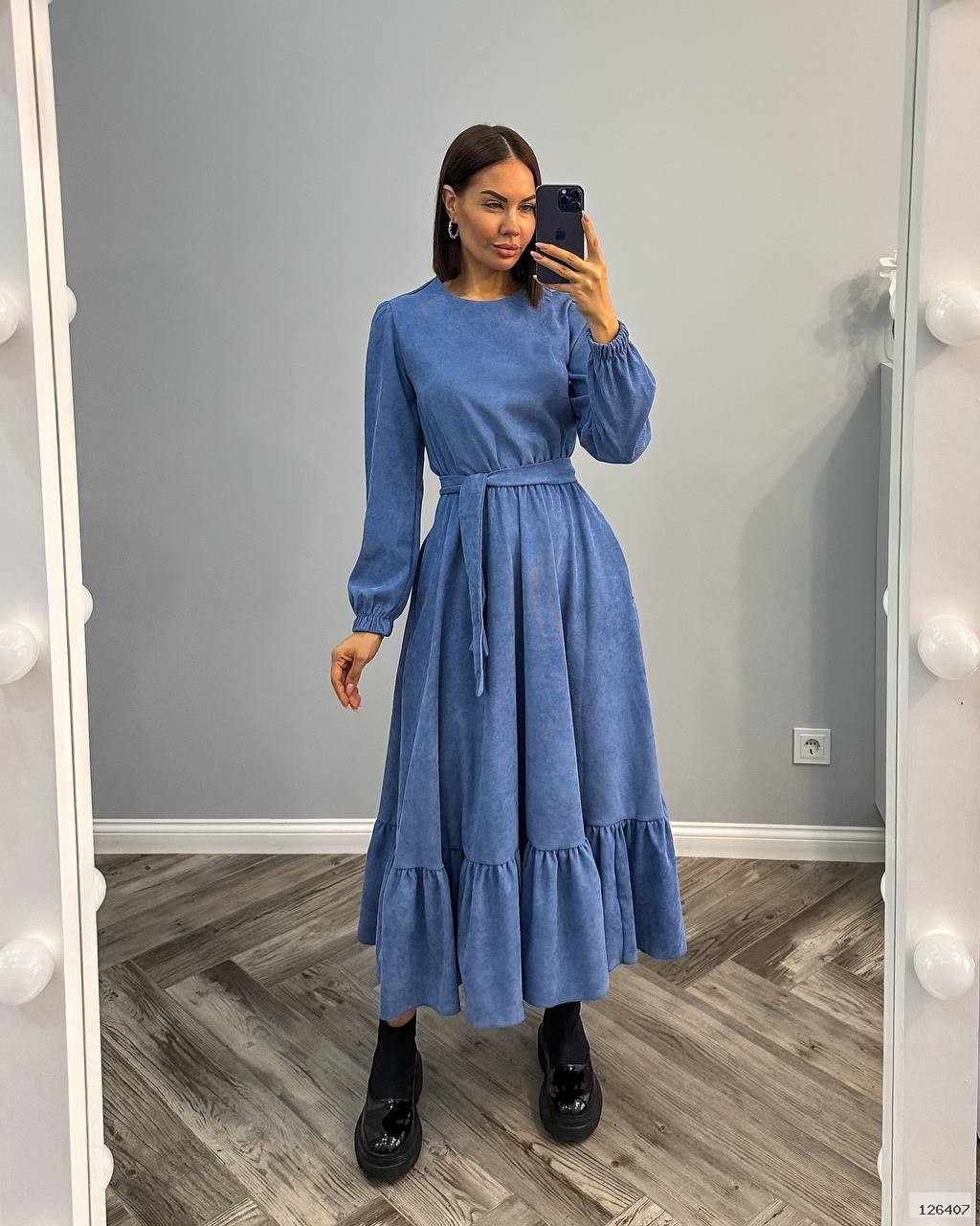 Елегантне довге плаття з м’якої приємної тканини, яке забезпечує комфорт та вишуканий вигляд на кожен день. Модель має припущений об’ємний рукав, манжети на резинці та пояс, який красиво підкреслює талію.