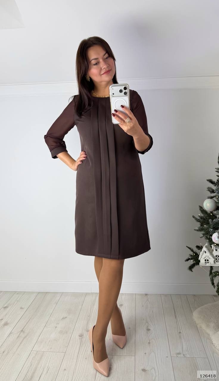 Ідеальне плаття, яке сховає будь-які недоліки. Рукав 3/4 з шифону, попереду сукні складки. Позаду зверху застібається на ґудзик та петельку.