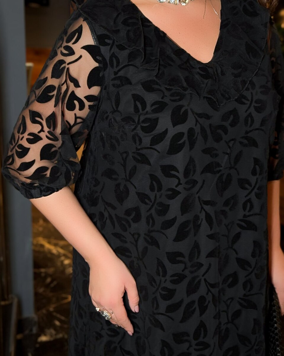 жіноче плаття - розкішний образ для жінок plus size. Ідеально задає правильні пропорції та приховує недосконалість фігури. Горловина сукні V-подібної форми, що дуже красиво підкреслює груди. Спинка із середнім швом. Універсальна і практична сукня довжиною нижче коліна.