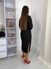 Базова , подовжена сукня з боковим розрізом закругленої форми, довгий рукав, на горловині V-подібний виріз.