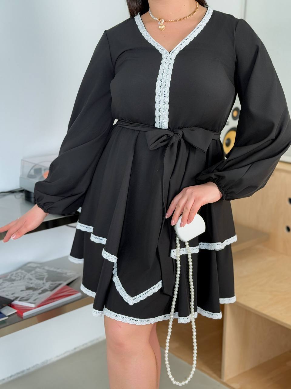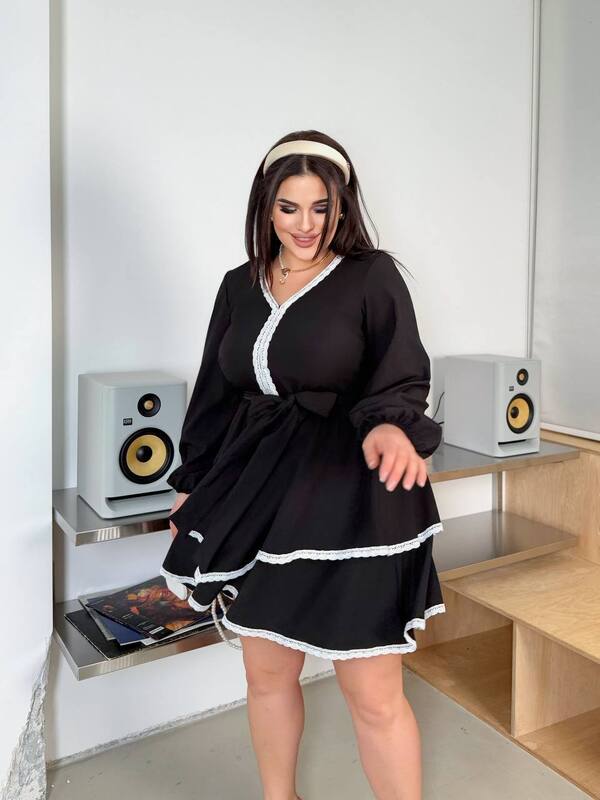 Ця стильна сукня з воланами і декоративними білими вставками стане чудовим вибором для будь-якого випадку. Вона має вільний крій, що підкреслює комфорт та легкість. Оригінальні рюші на плечах додають образу романтичності, а білі мереживні акценти по краю надають сукні витонченого вигляду. Довжина сукні вище коліна, що робить її ідеальним варіантом як для повсякденних прогулянок, так і для особливих подій. Поєднується як з класичними туфлями, так і з більш зручним взуттям.