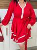 Ця стильна сукня з воланами і декоративними білими вставками стане чудовим вибором для будь-якого випадку. Вона має вільний крій, що підкреслює комфорт та легкість. Оригінальні рюші на плечах додають образу романтичності, а білі мереживні акценти по краю надають сукні витонченого вигляду. Довжина сукні вище коліна, що робить її ідеальним варіантом як для повсякденних прогулянок, так і для особливих подій. Поєднується як з класичними туфлями, так і з більш зручним взуттям.