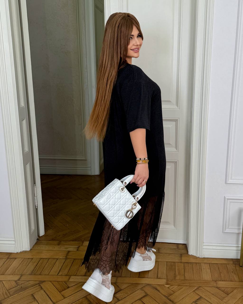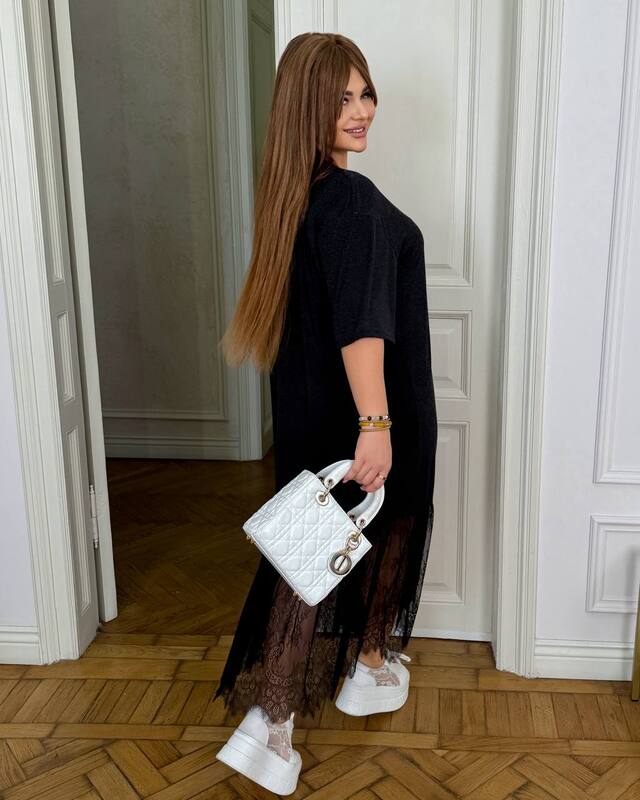 Сукня вільного силуету,зручна та легка у носінні.Низ прикрашений витонченим мереживом,яке додає образу ніжності та жіночності.