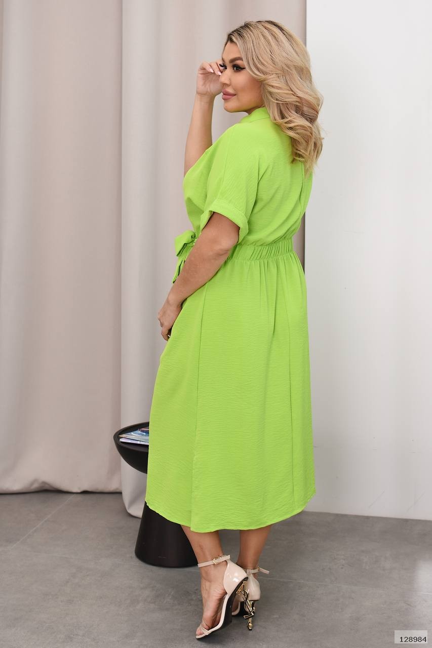 Тканина має гарну розтяжність, напів вільний крій та резинка на талії с заду робить фігуру більш жіночною. Сукня має також вшитий пасок на талії.
