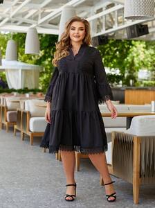 Витончена та жіночна сукня, оздоблена ніжним мереживом, що додає образу елегантності. Гарно сідає по фігурі, підкреслює силует та забезпечує комфорт протягом дня. Ідеальний варіант як для повсякденного образу, так і для особливих подій.