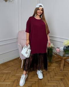 Сукня вільного силуету,зручна та легка у носінні.Низ прикрашений витонченим мереживом,яке додає образу ніжності та жіночності.