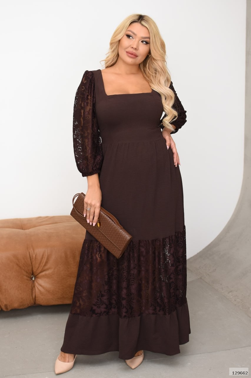Елегантна комбінована максі-сукня із фактурної жатки та гіпюру. Ідеальний вибір для урочистих подій, романтичних вечорів чи стильних фото!