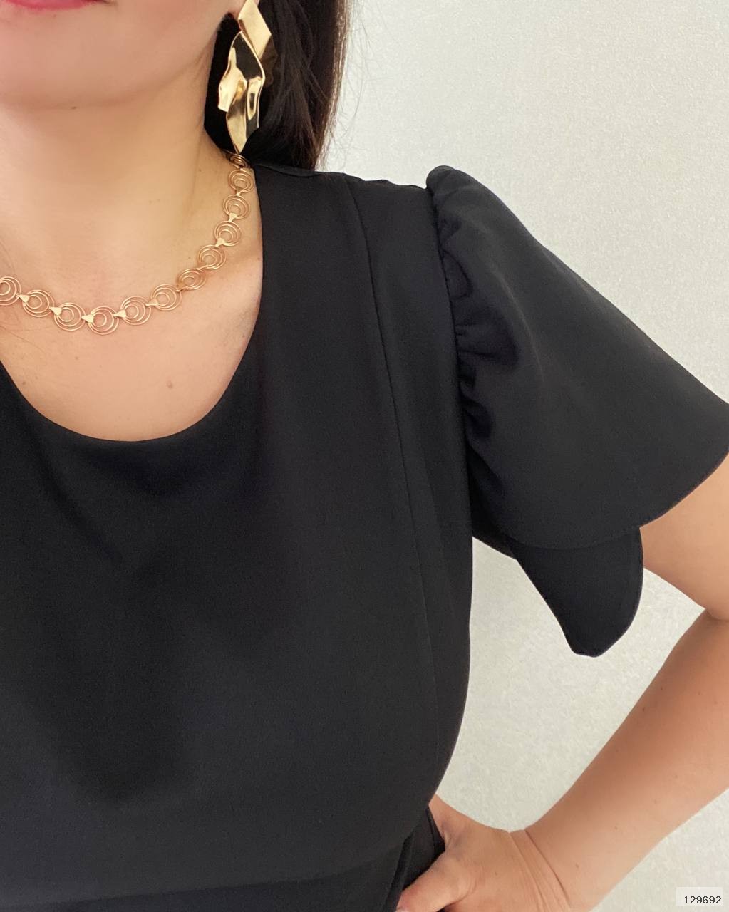 ОГ 112 см, ОТ 90 см, ОС 124 см, довжина виробу 115 см, довжина рукава 20 см.