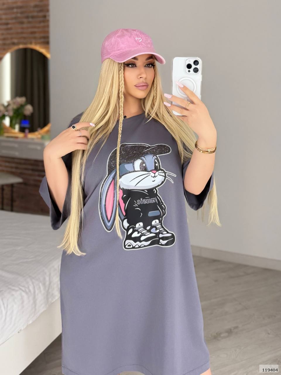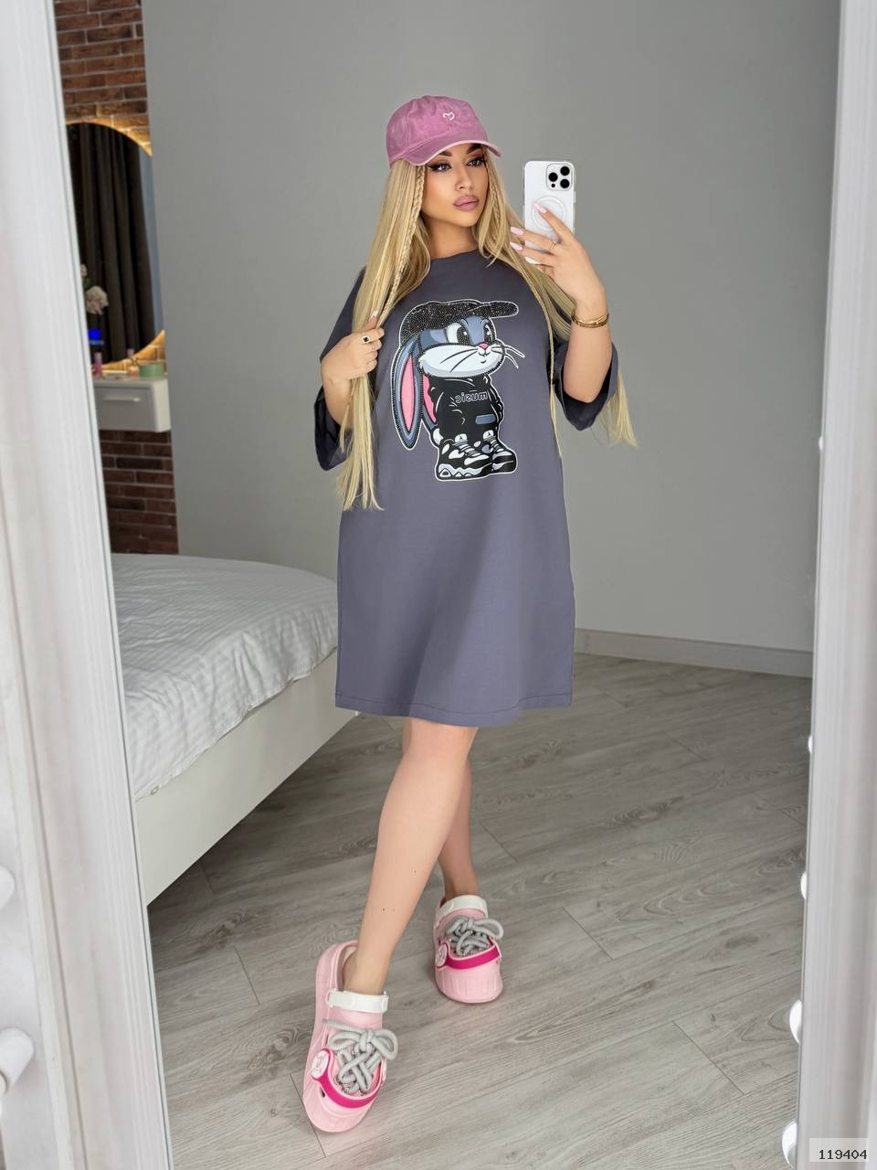 Стильна сукня-футболка вільного крою. Оформлення: ДТФ печать плюс стрази преміум якості DMS