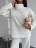 Кофта вільного крою з м’яким горловим відворотом (напівгольф), має подовжений рукав — виглядає дуже елегантно й охайно.
