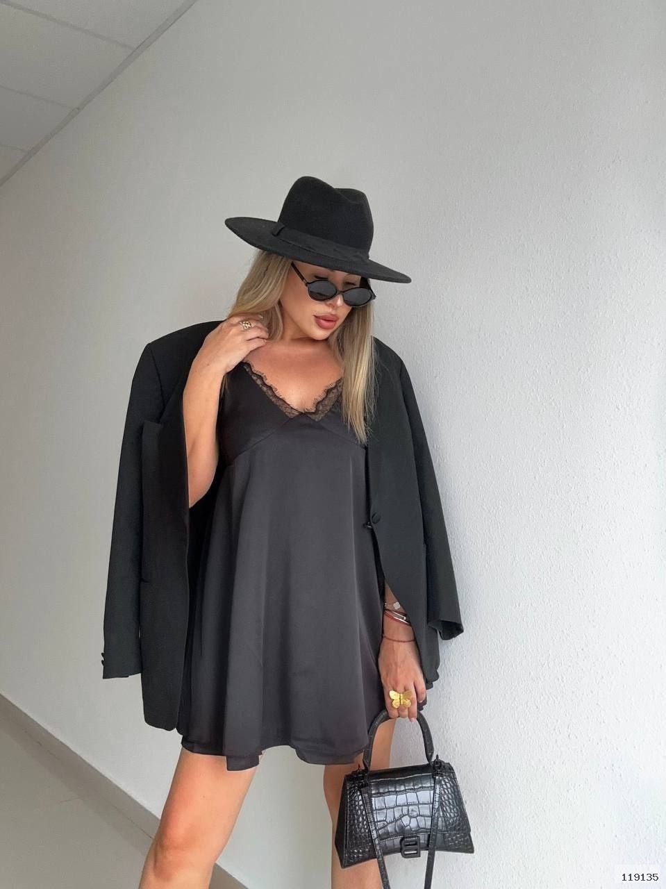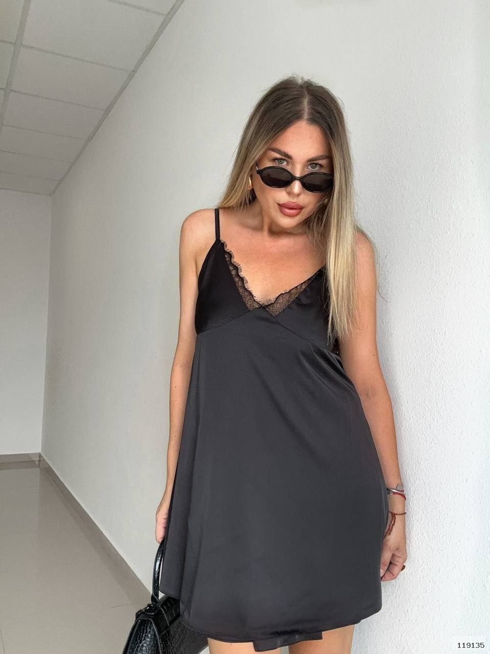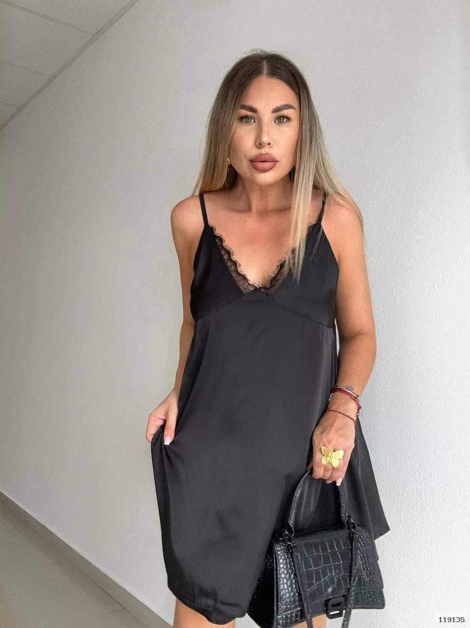 Локанічна та елегантна сукня-комбінація, створить неповторний жіночний образ Завдяки бездоганному пошиву, сукня ідеально сідає по фігурі , виріз на спині та кружево на грудях , додасть образу легкості та грайливості