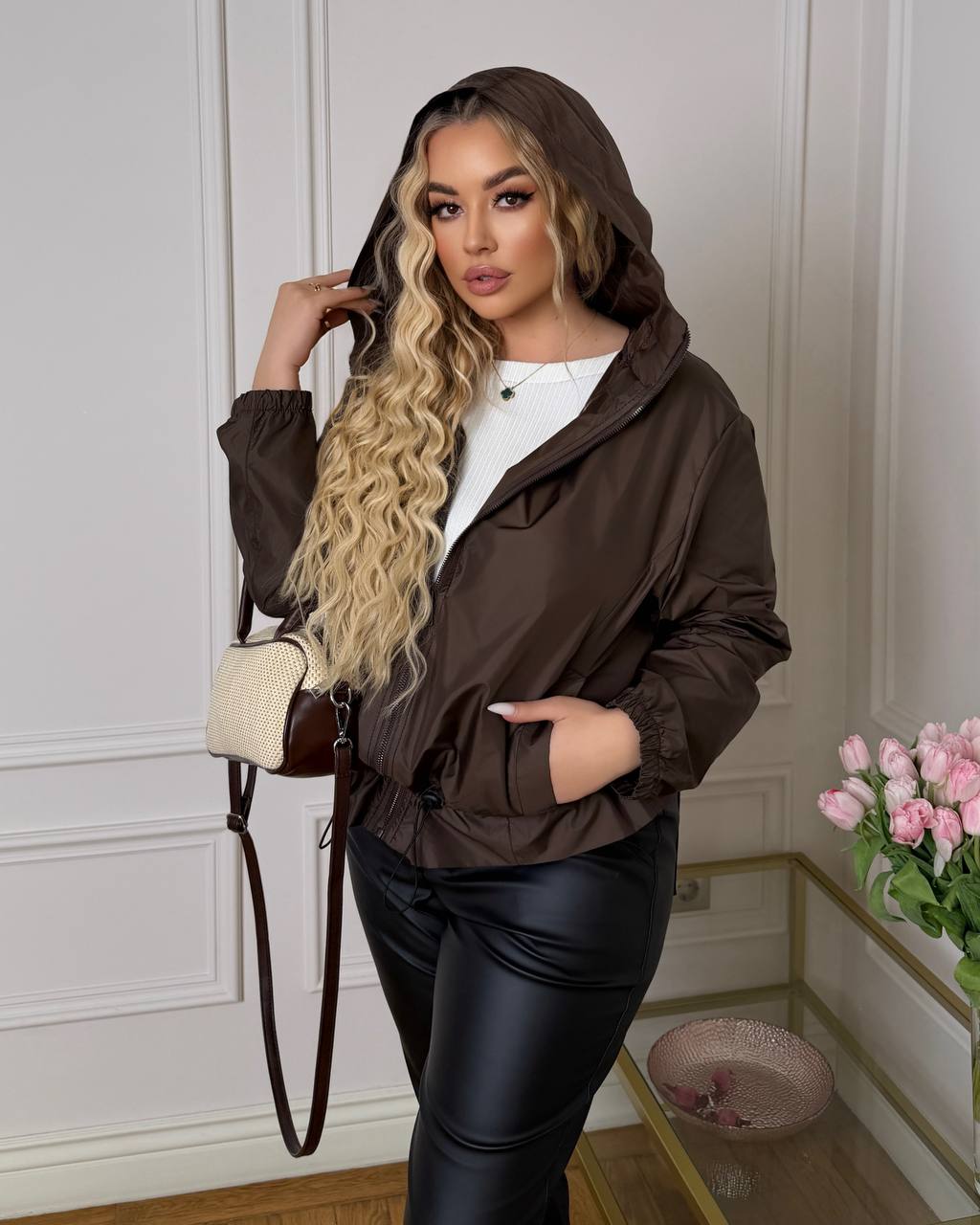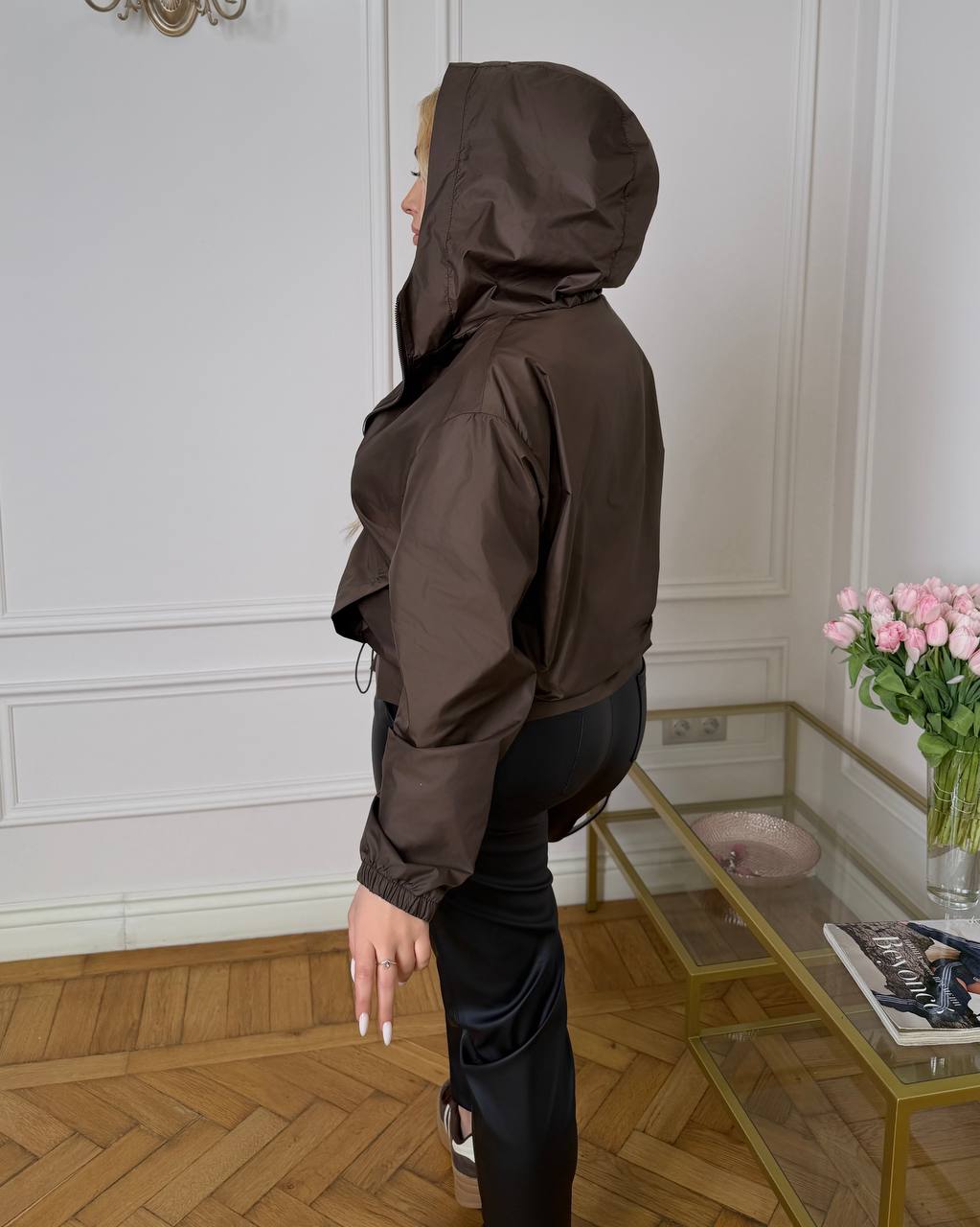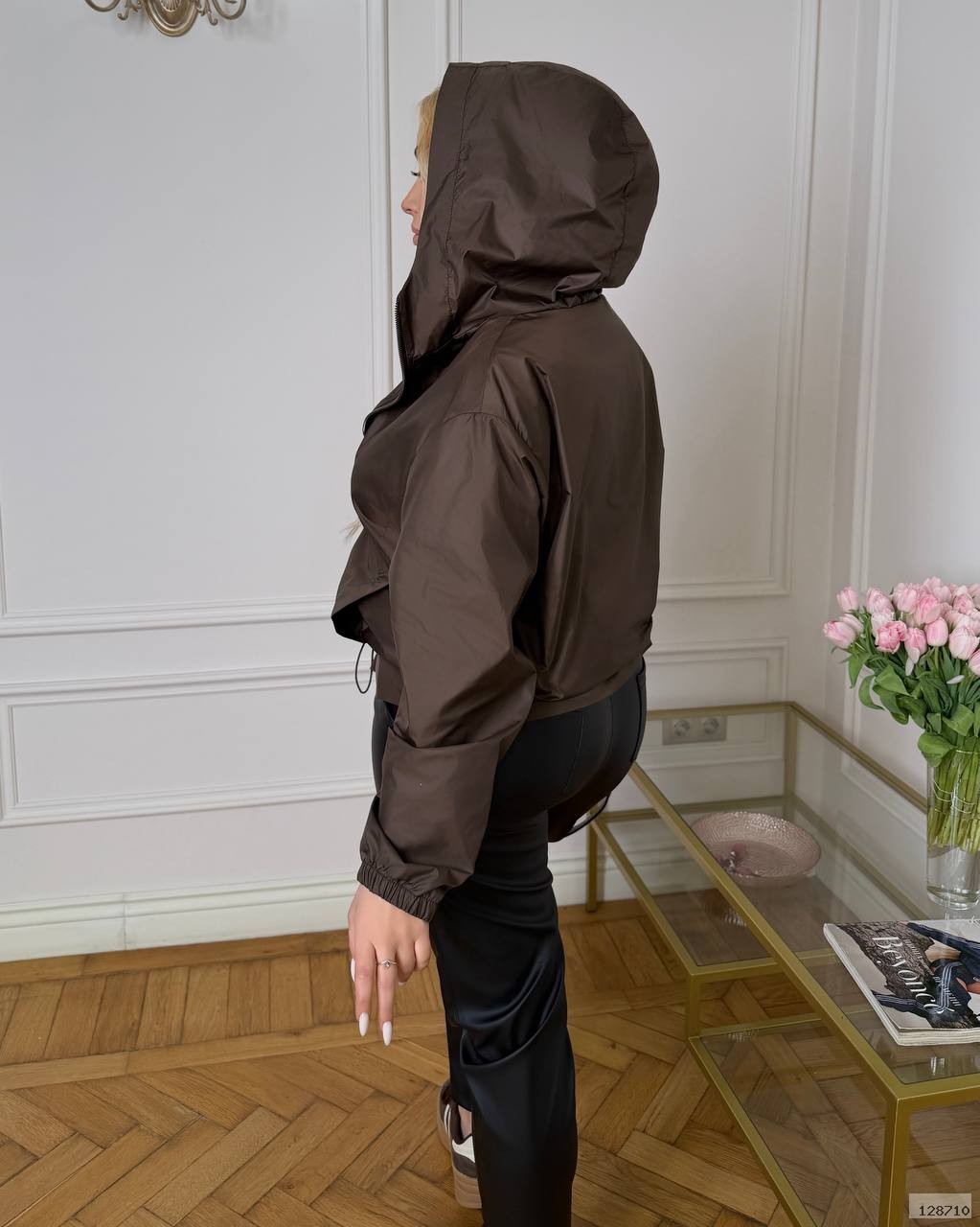 Укорочена вітровка з капюшоном без підкладки. Призначена для захисту від вітру та дрібного дощу в деміісезнну погоду. Застібка на блискавці , кишені, резинка по низу рукава, затяжка по лінії стегон для регулювання.