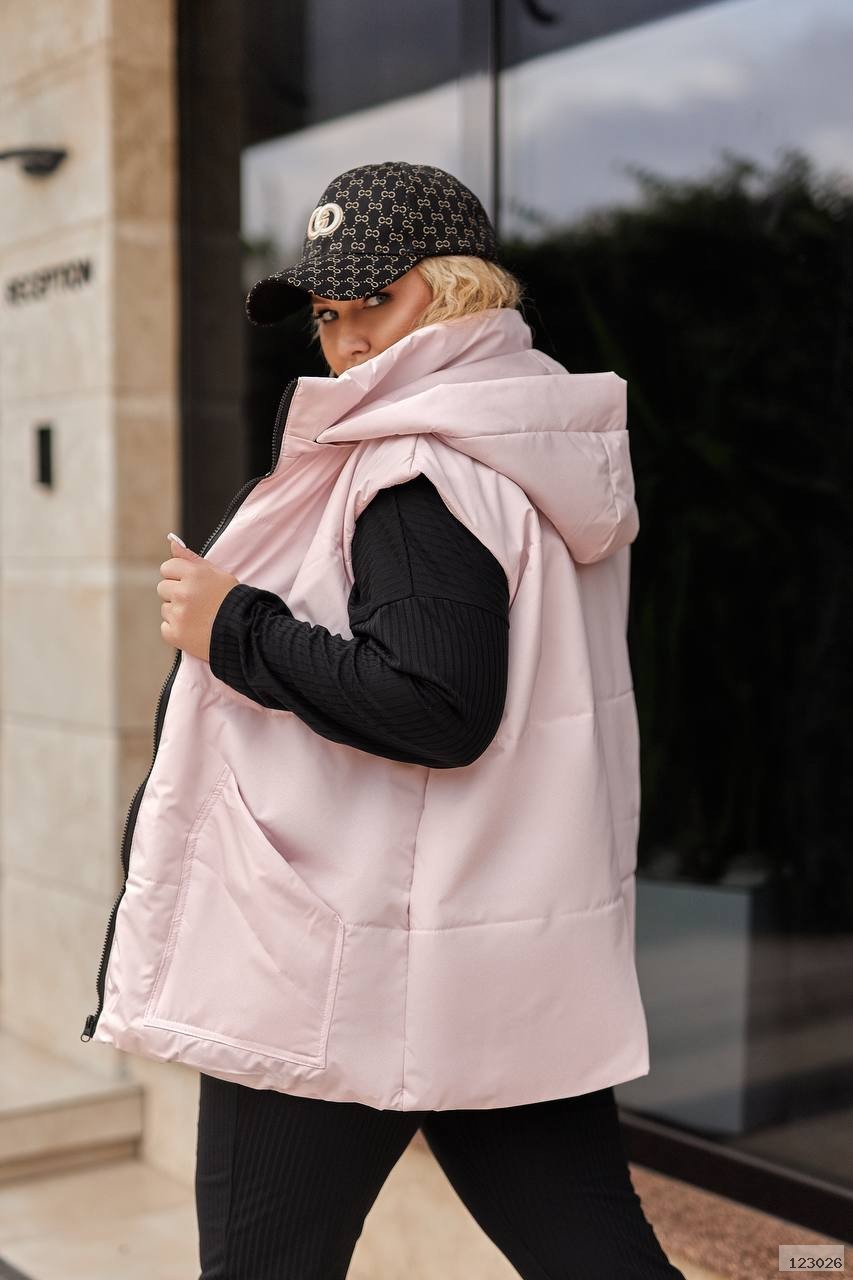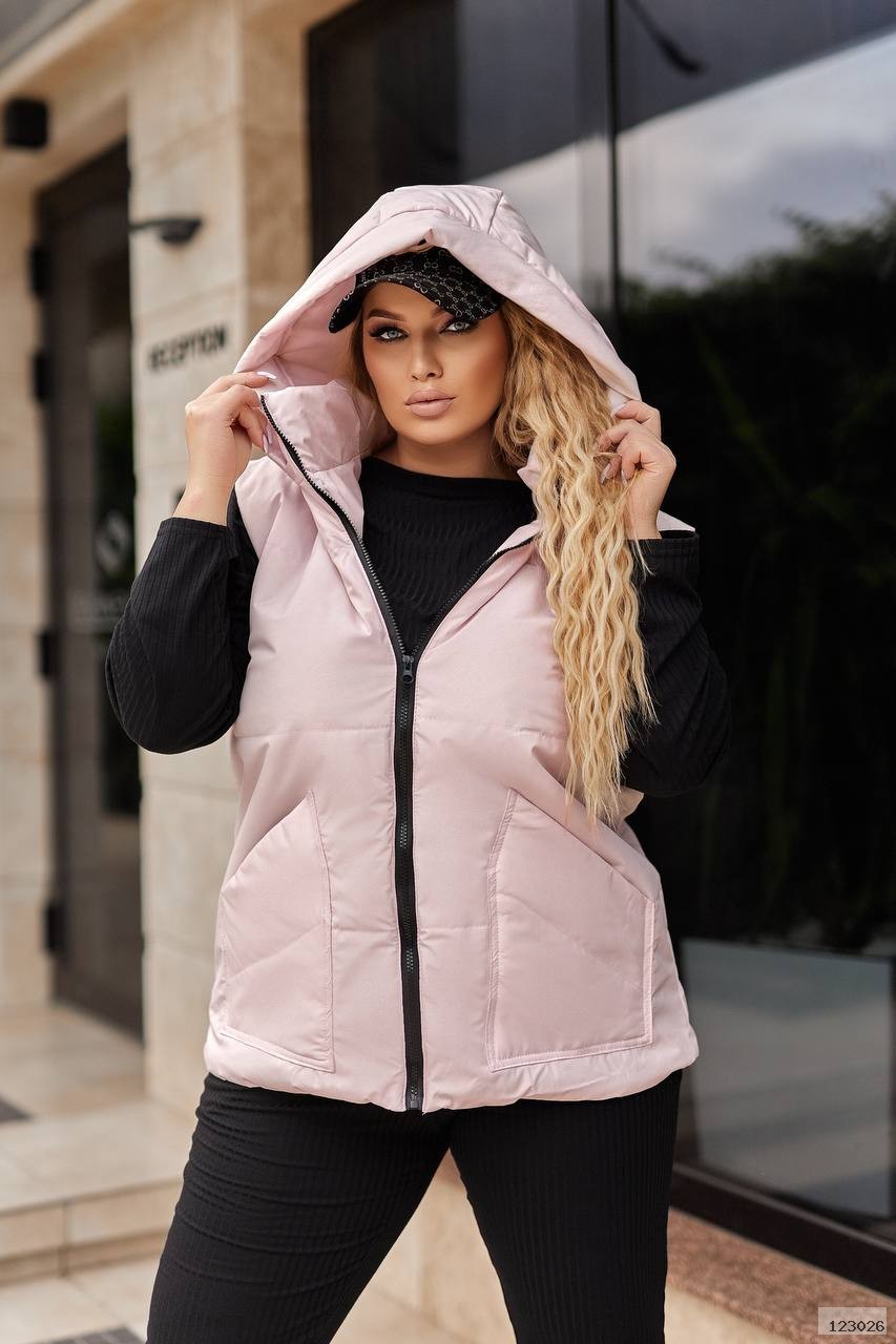 Модний і зручний фасон, який ідеально підходить для осіннього періоду. Стильна жилетка з капюшоном і практичними кишенями, які додають зручності та елегантності.
