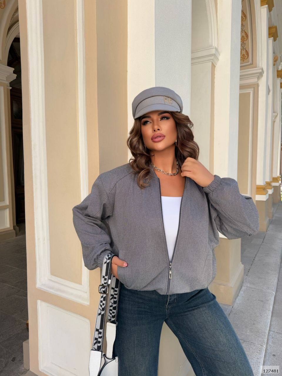 Бомбер виконаний в універсальних кольорах із фактурної тканини, приємної на дотик.