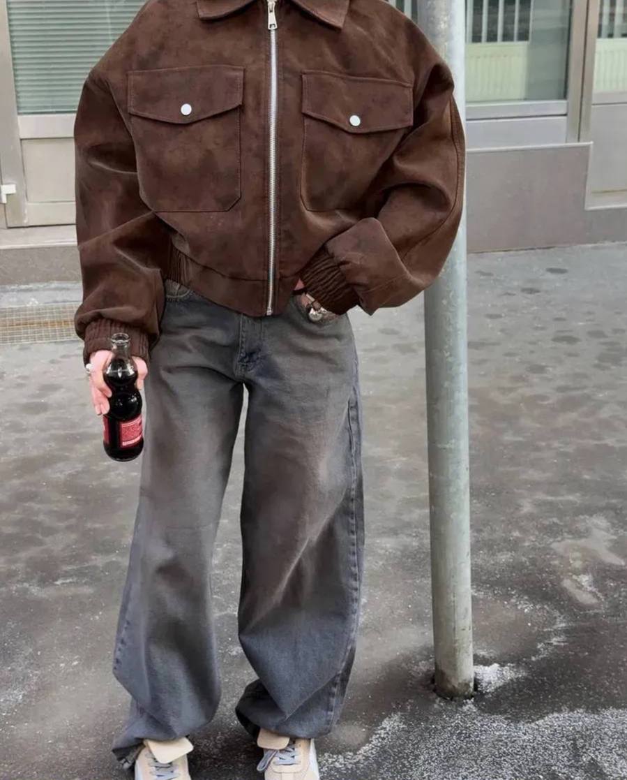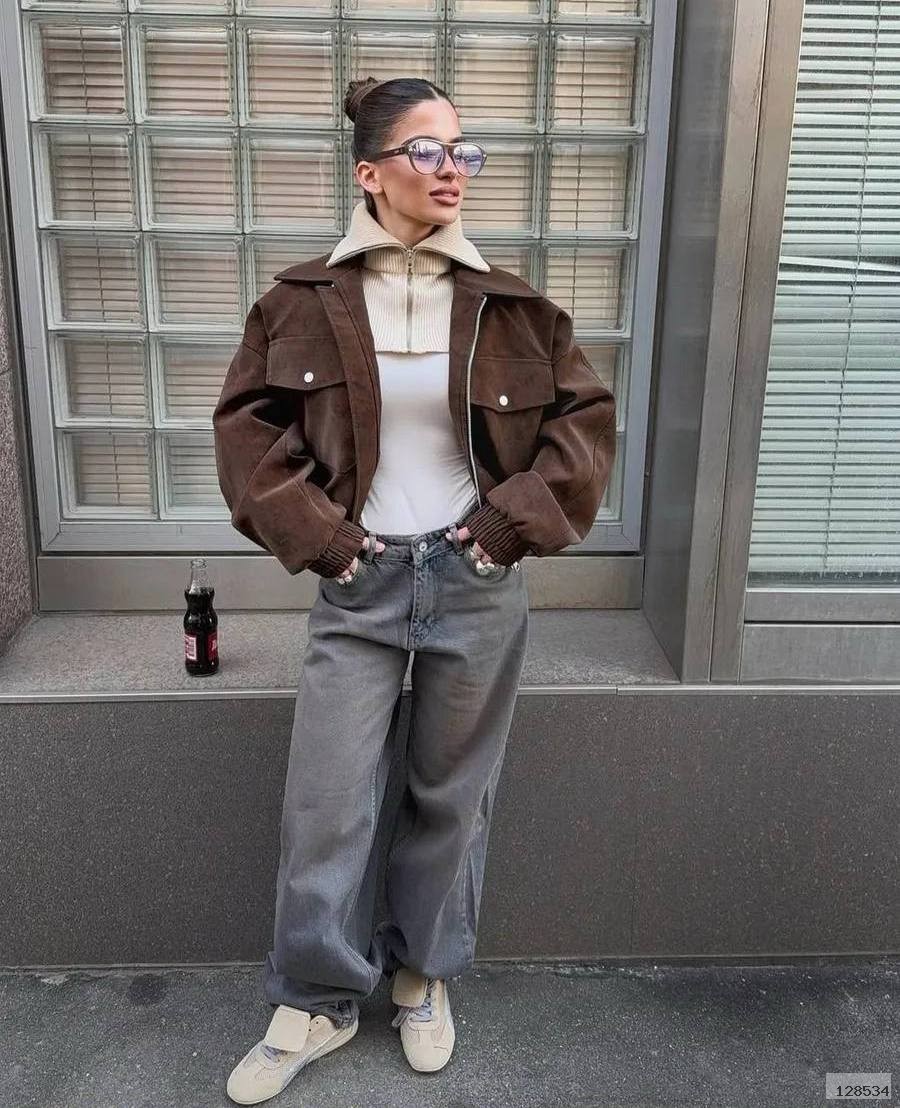 Стильна замшева куртка-бомбер oversize