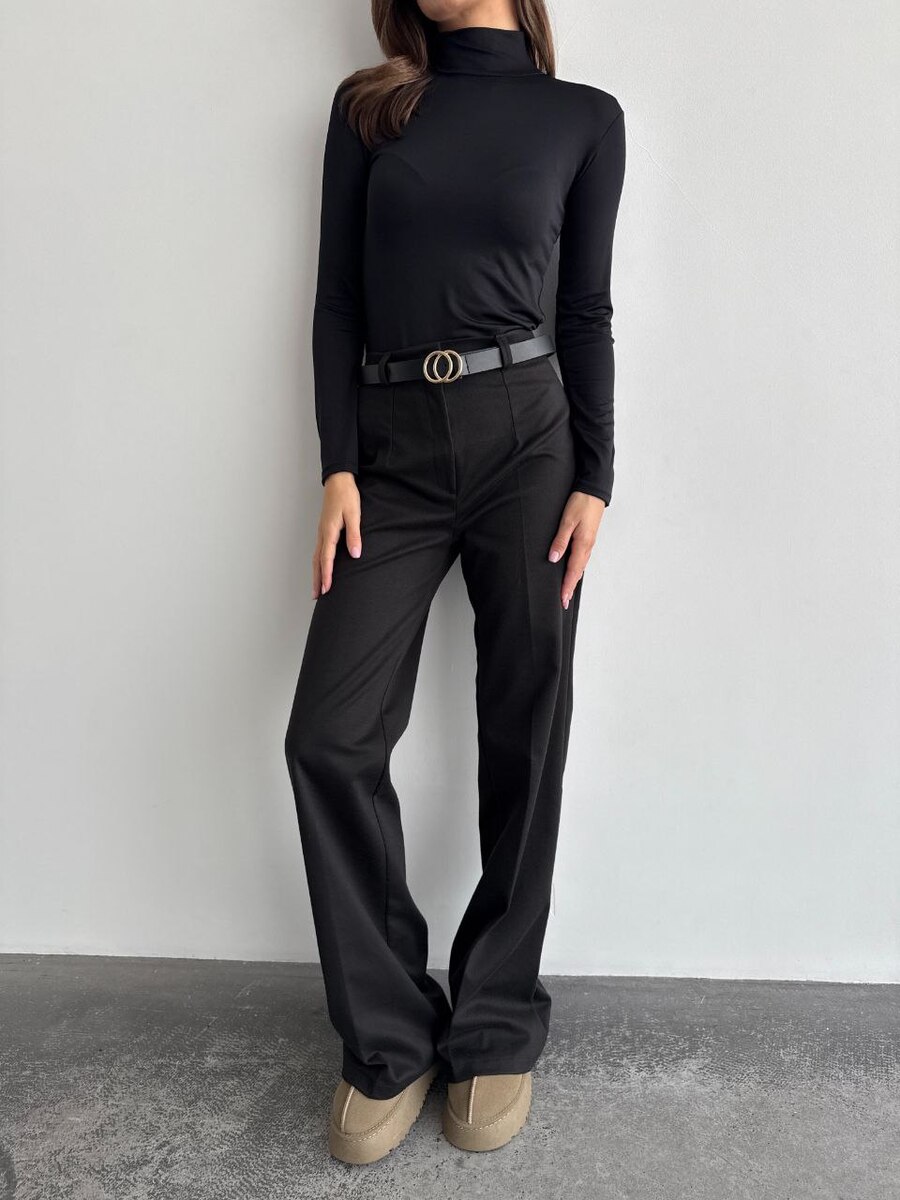 Теплі класичні брюки кльош, виконані з якісною шерстяної тканини стрейч.