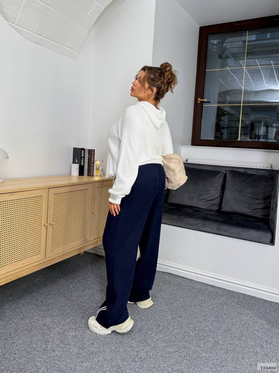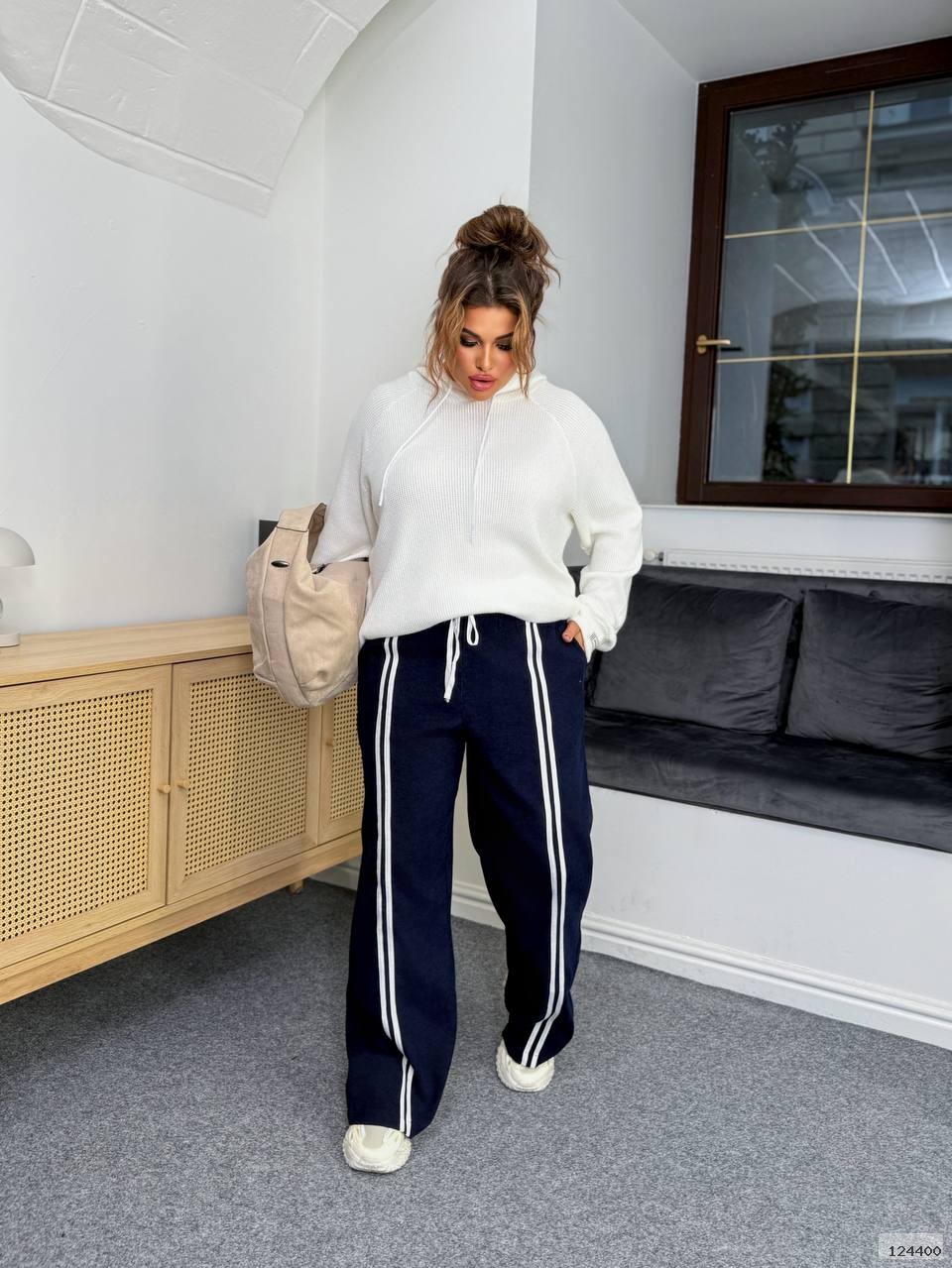 Брюки палацо с лампасами.