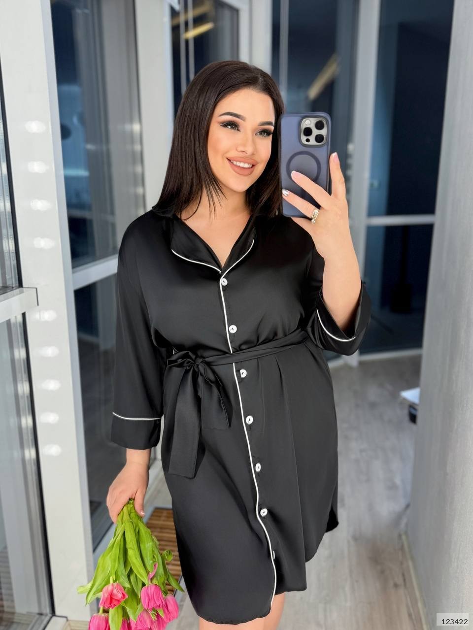 Дуже крутий халат на ґудзиках. Дома також можна виглядати неперевершено