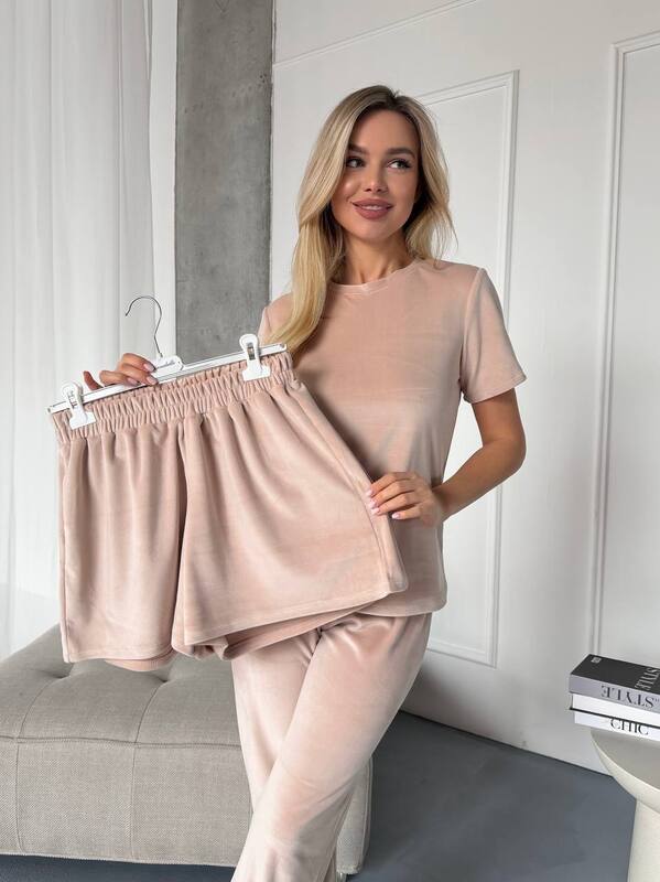 Домашній костюм трійка, який складається З топу, штанів і шортів. Гарна тканина, велика палітра кольорів. Резиночка в подарунок
