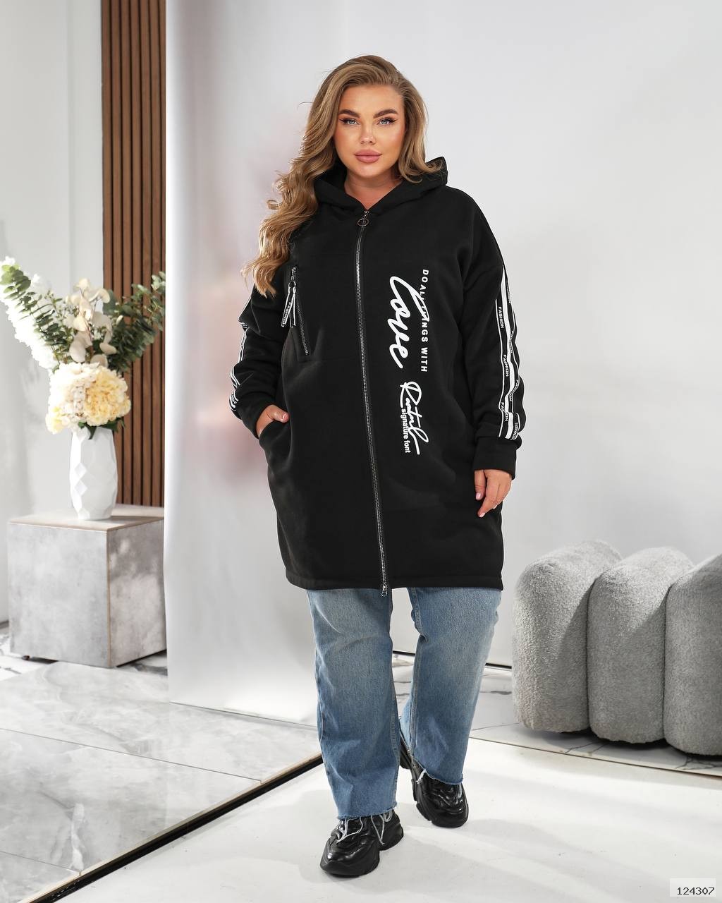 Модний подовжений фасон на блискавці з капюшоном – ідеальний для прохолодних днів